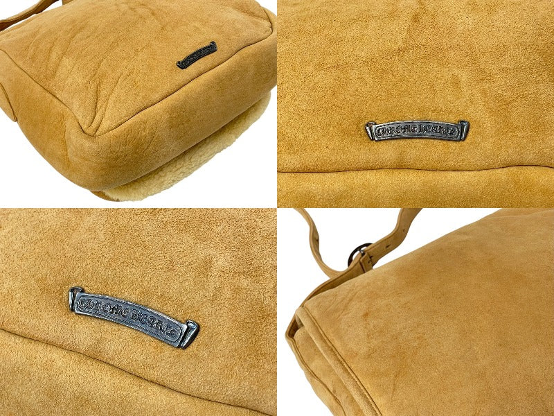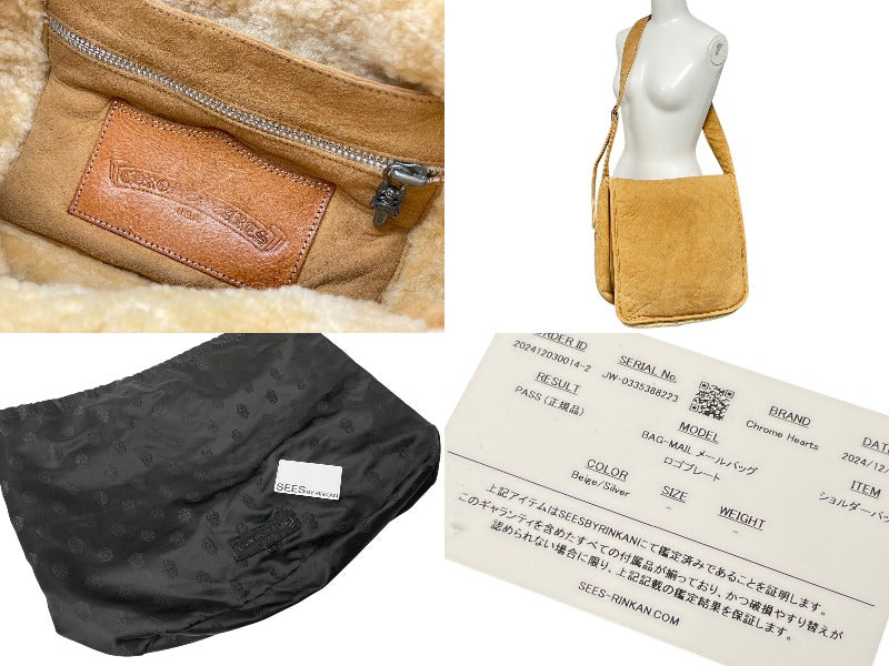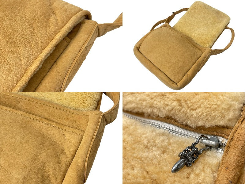 CHROME HEARTS クロムハーツ ムートン ソフトショルダーバッグ ダガージップ ベージュ シルバー925 美品 中古 4c071736