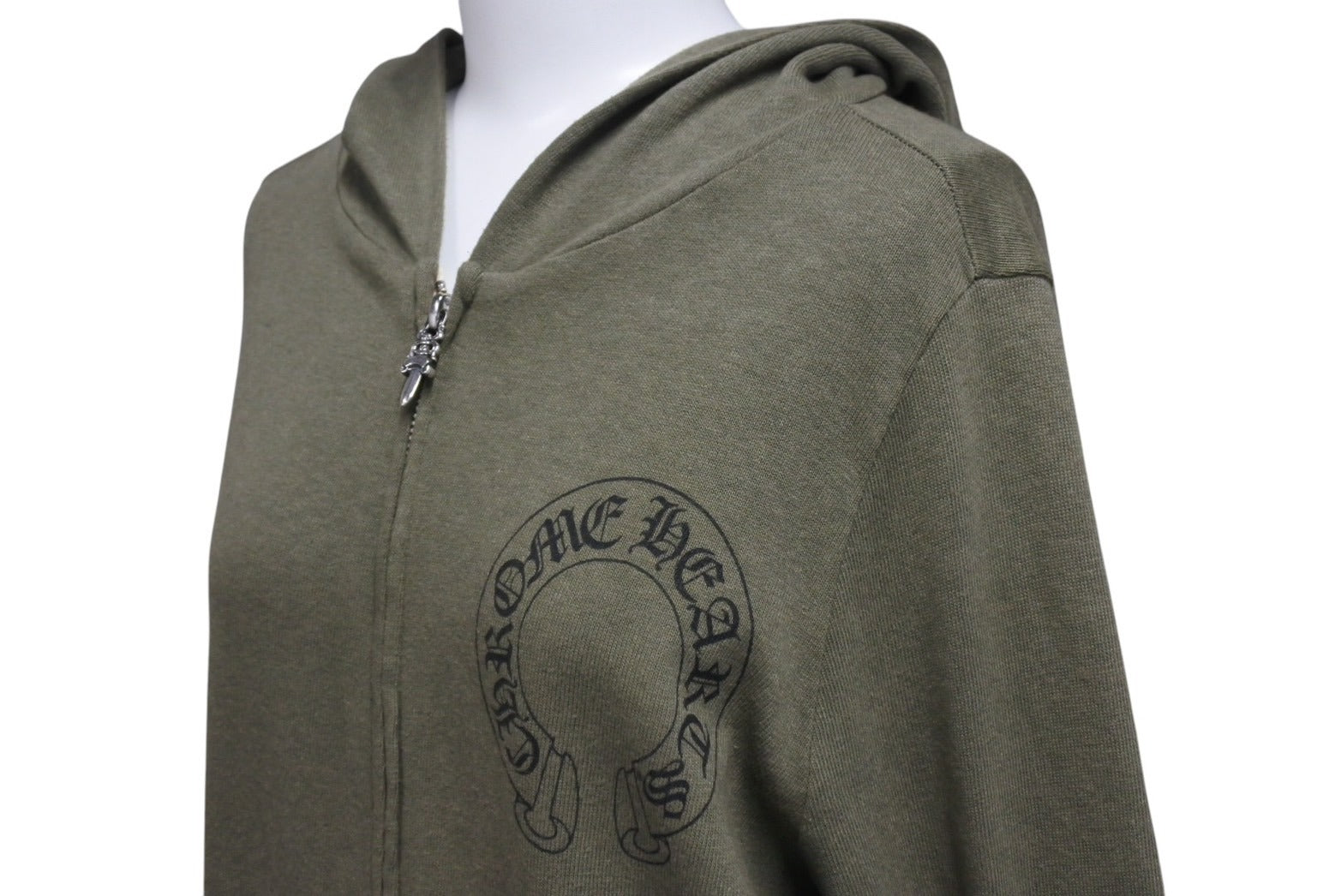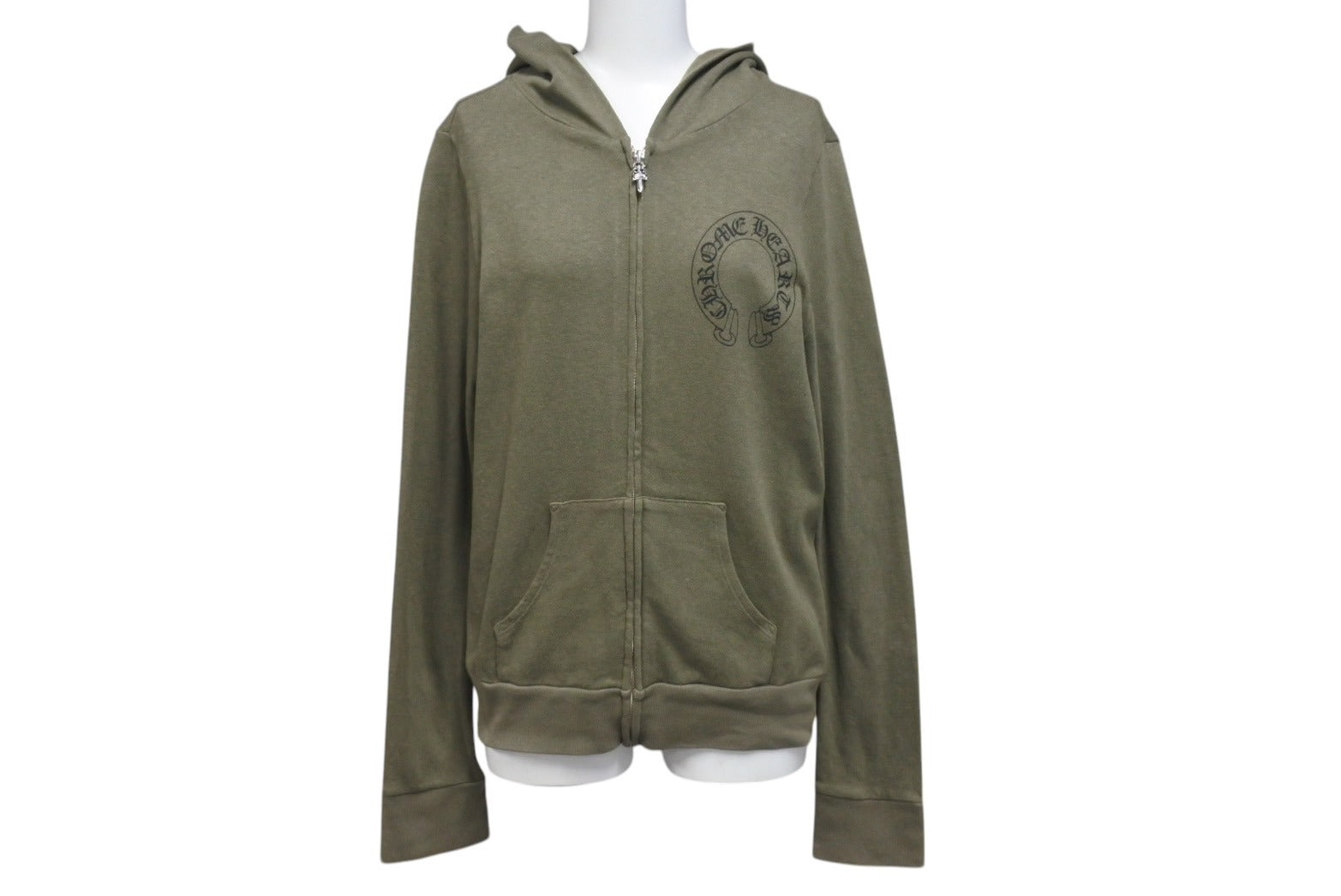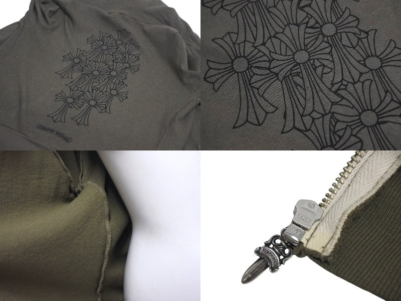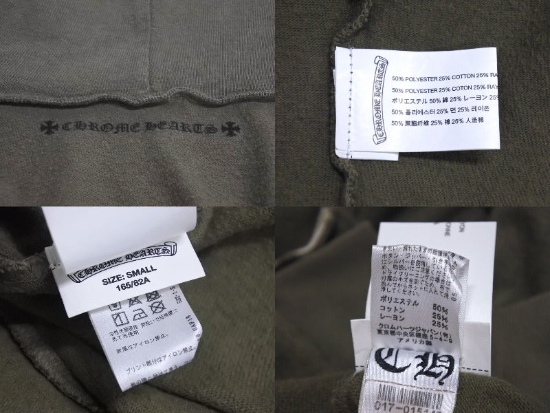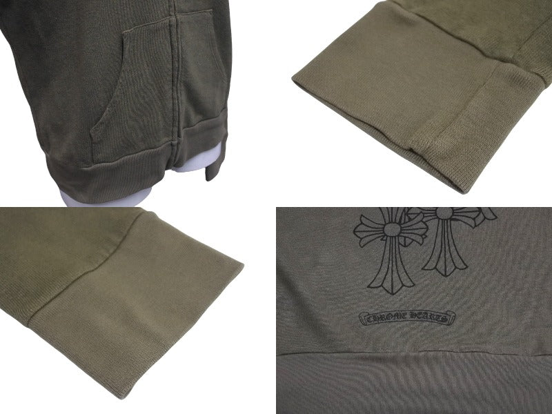 極美品 CHROME HEARTS クロムハーツ ジップアップフーディー サイズS セメタリークロス ホースシュー ダガージップ カーキ 中古 4c071791