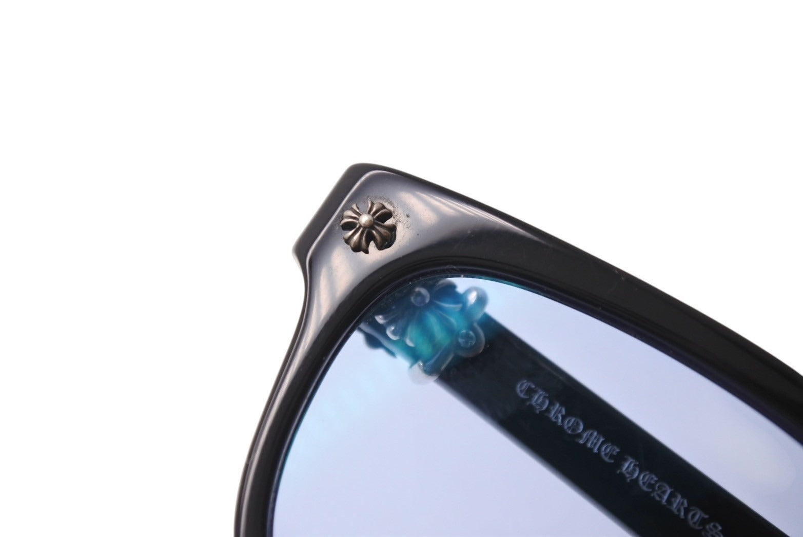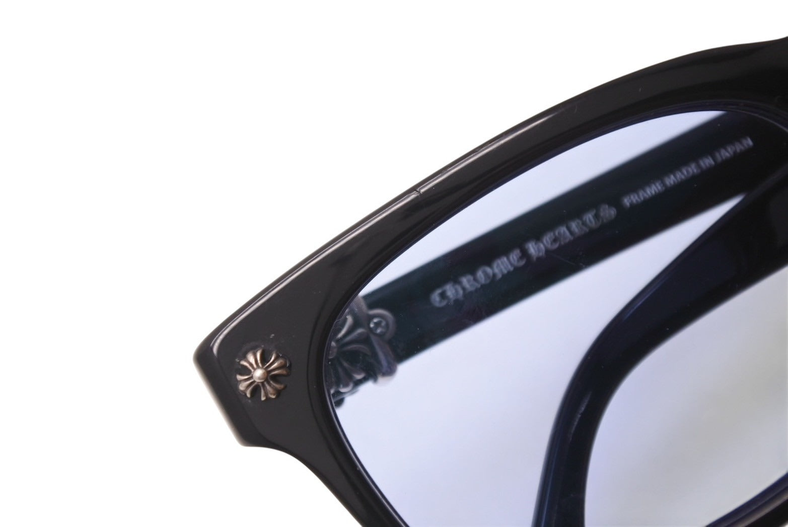 度なしでテンプル、フレームに施されたシルバーカラーのCHクロスがとてもオシャレなアイテムです。スタイリングのアクセントにオススメです。