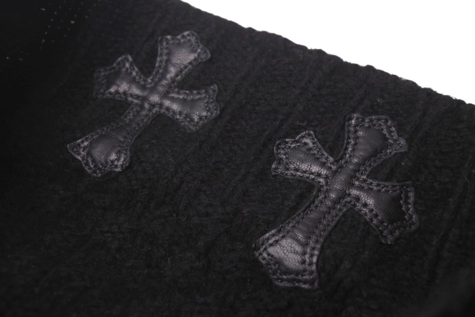 ボディはカシミヤで、レザークロスパッチが八つ装飾された贅沢なアイテムです。