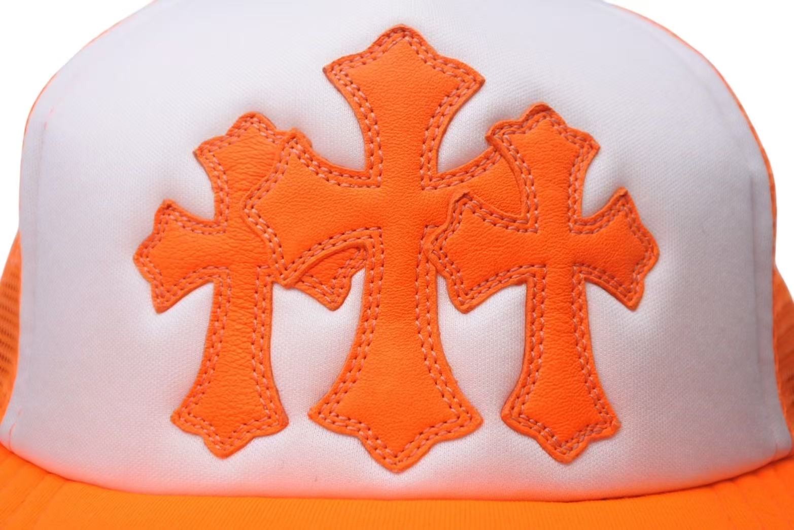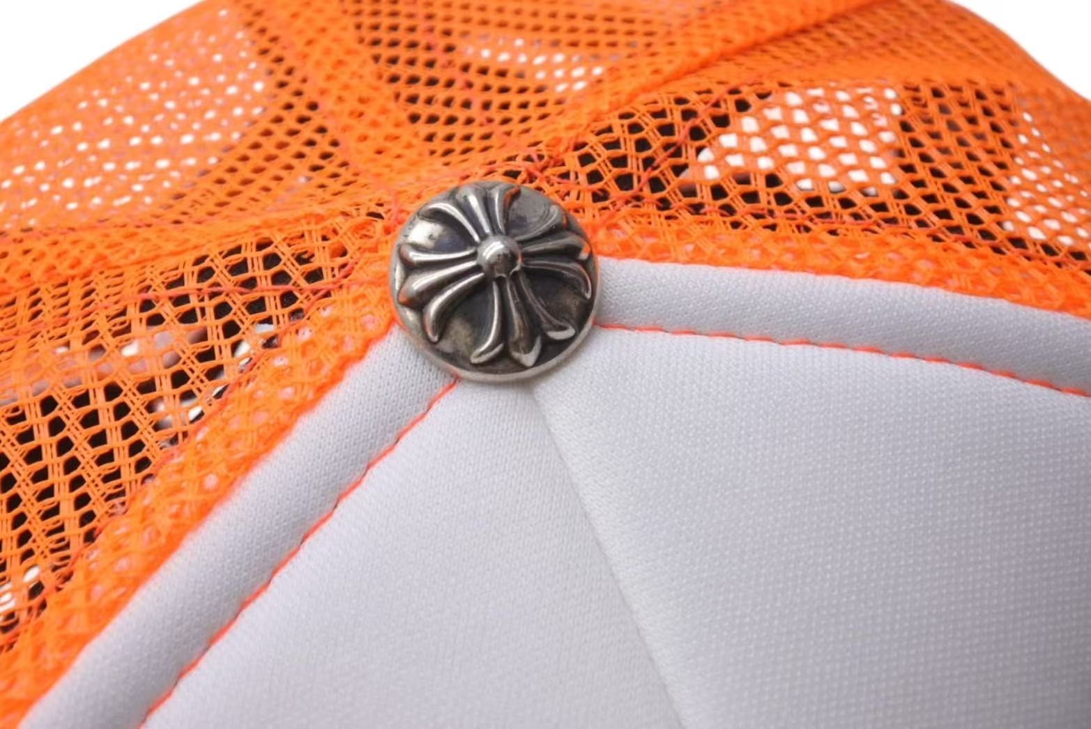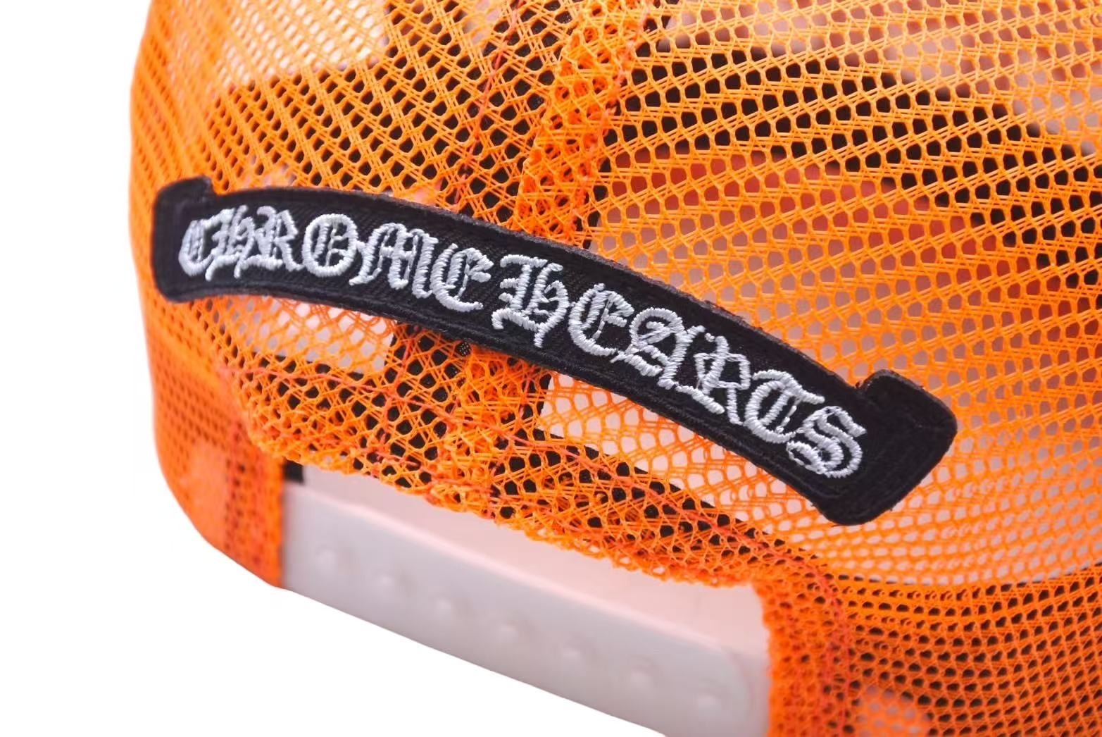 新品未使用 CHROME HEARTS クロムハーツ トラッカーキャップ CHクロスパッチ ONE SIZE メッシュ オレンジ シルバー925 中古 4c073222