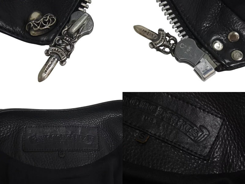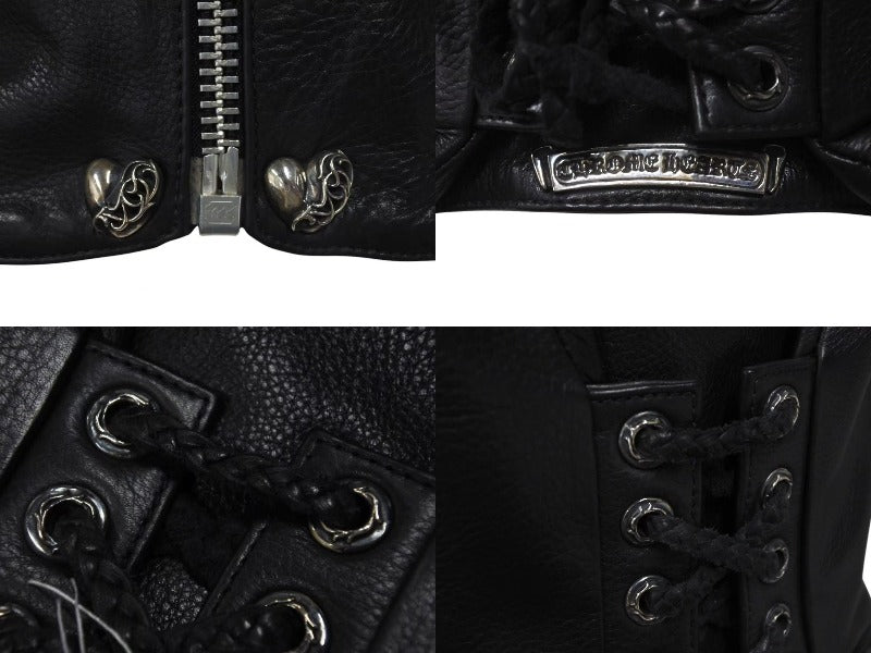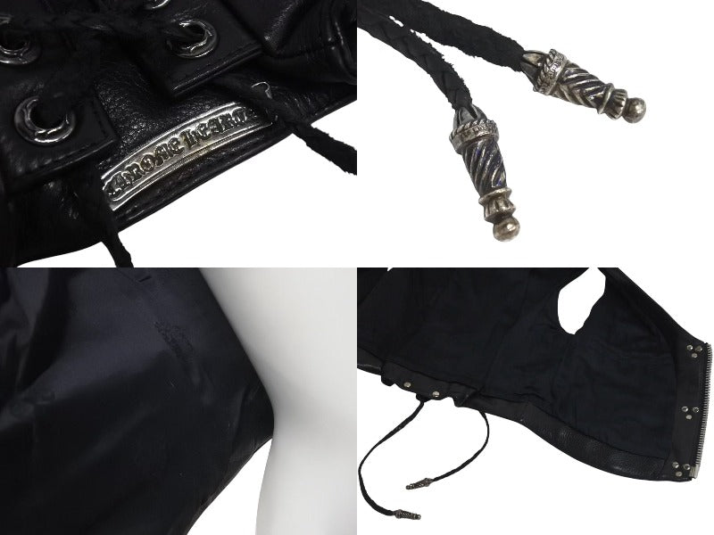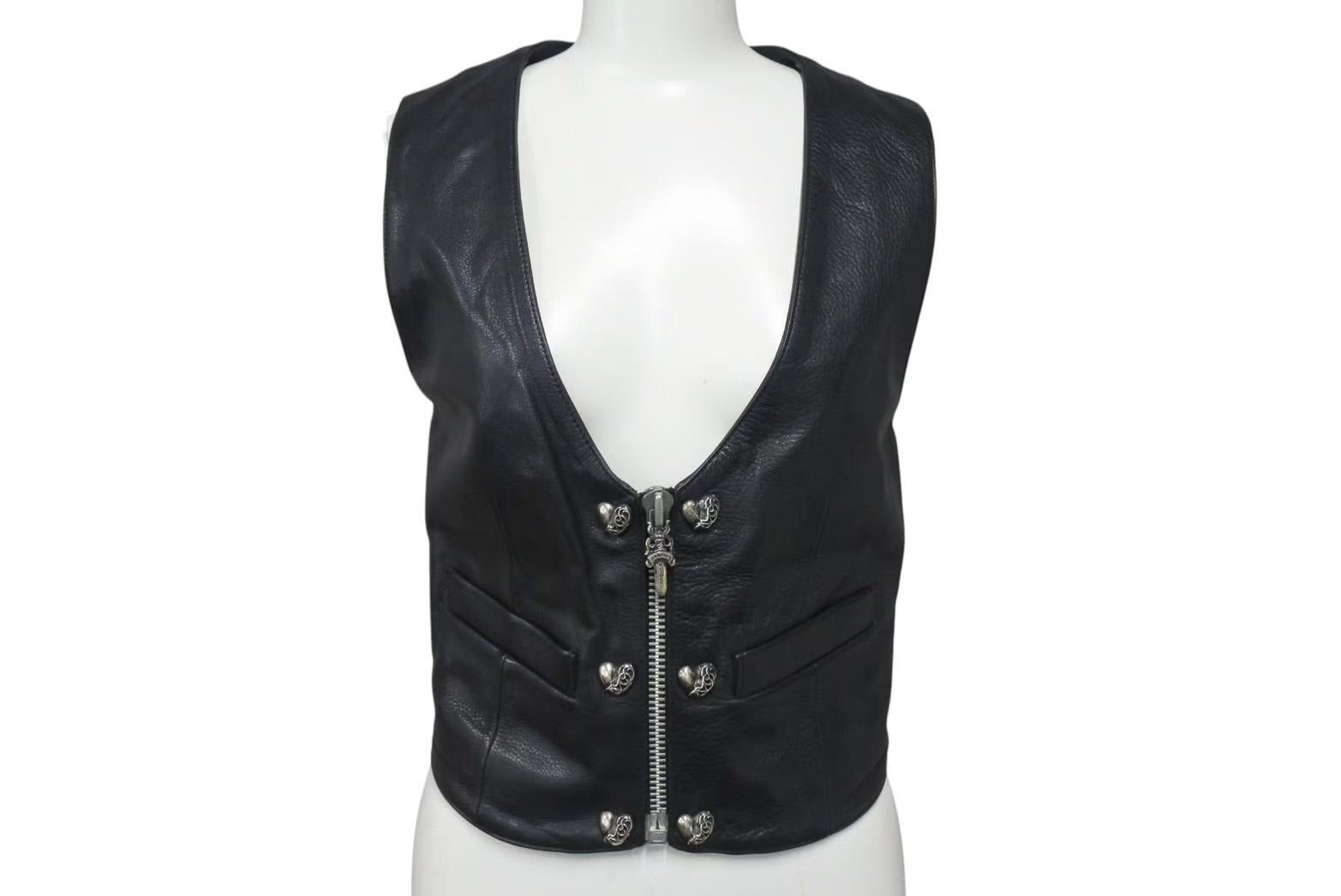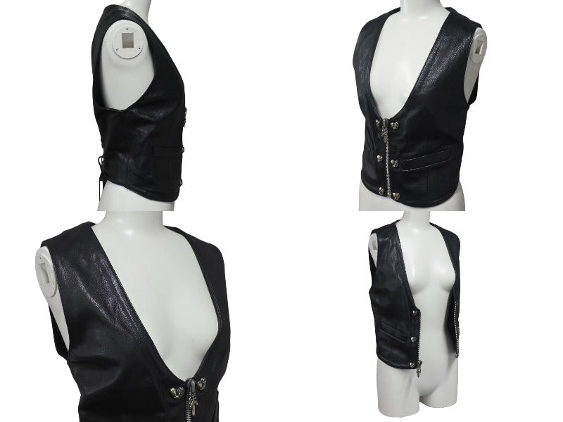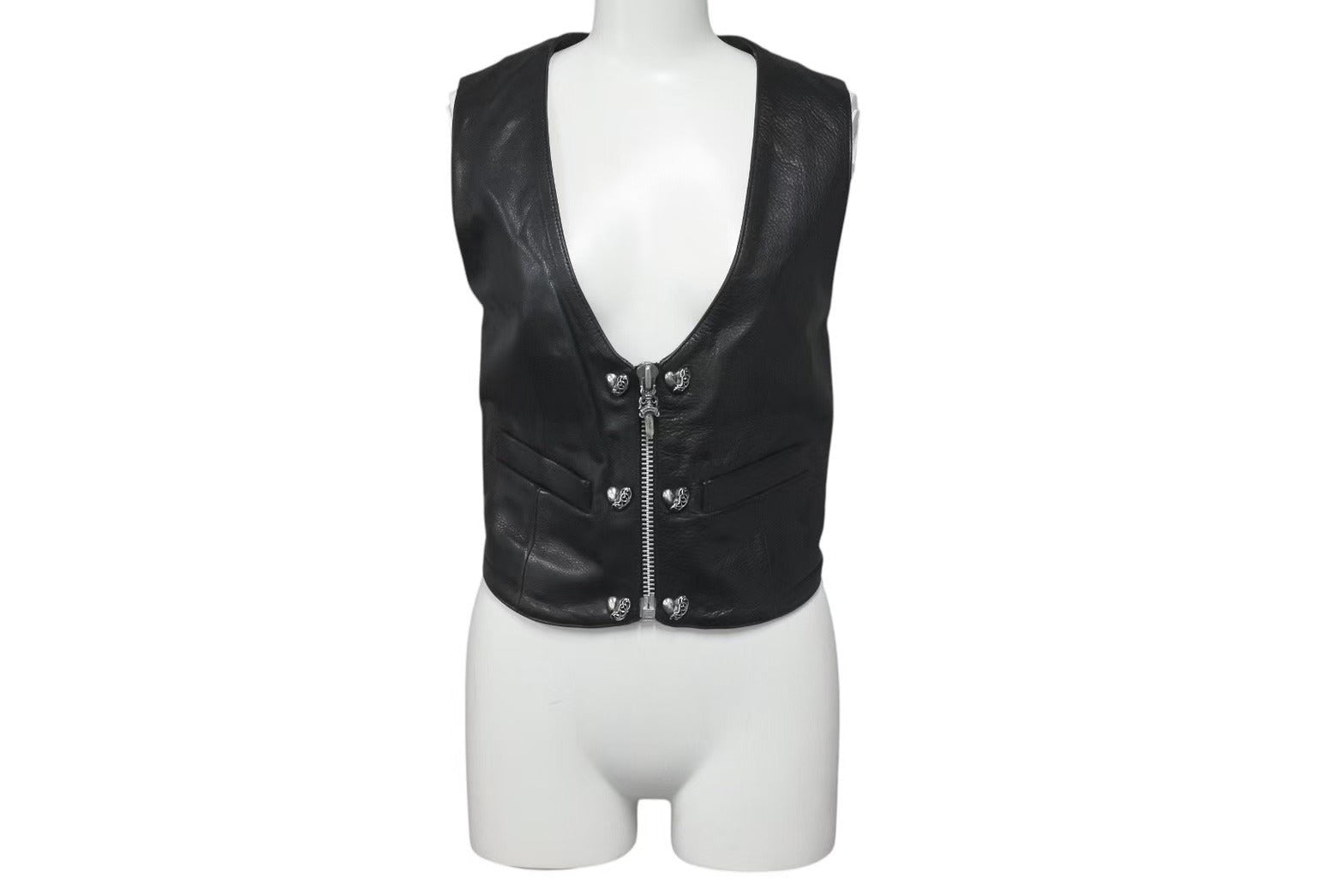 CHROME HEARTS クロムハーツ ハート レザーベスト サイズS ブラック シルバー925 レザー 美品 中古 4c073266