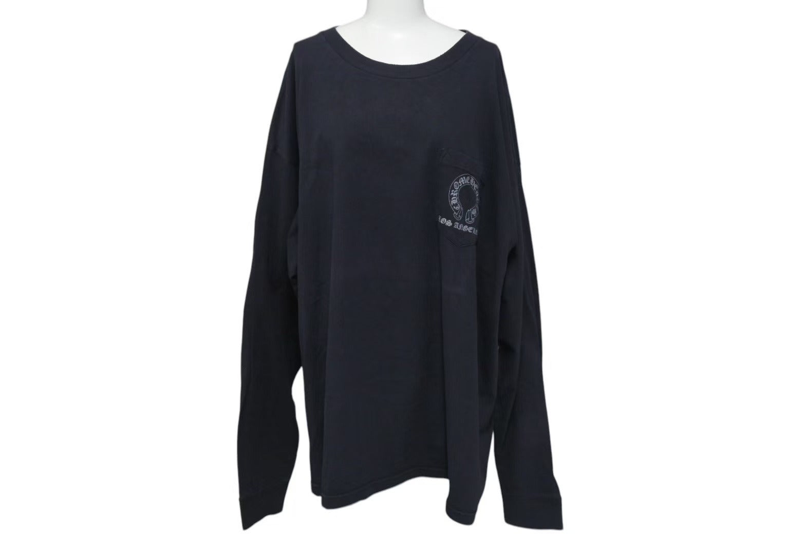CHROME HEARTS クロムハーツ ホースシュー Tバー ロングスリーブTシャツ ロゴ コットン ブラック XXL 美品 中古 4c073292