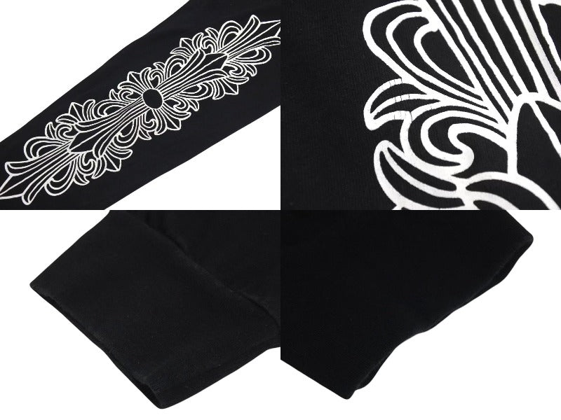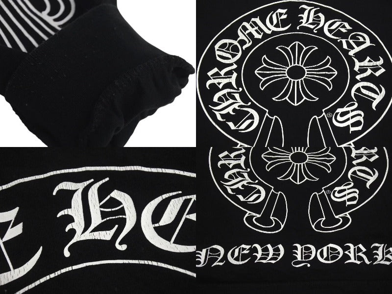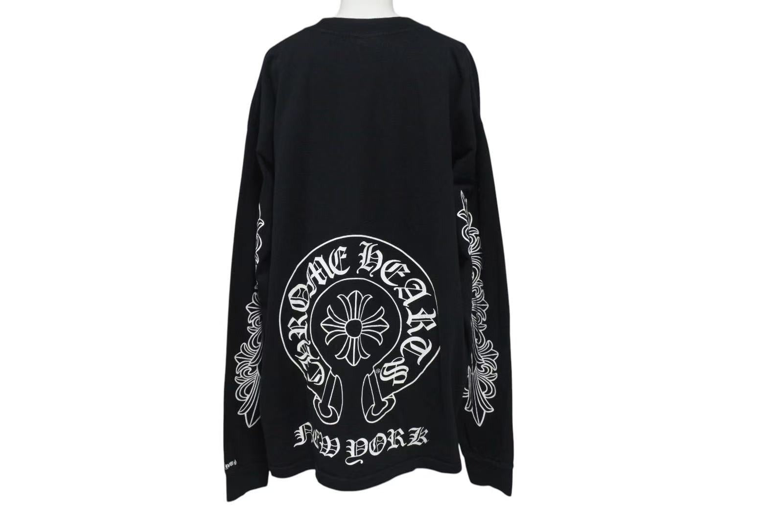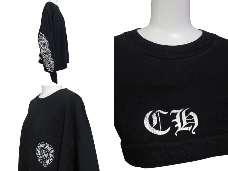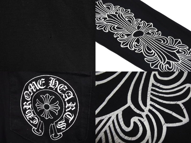 CHROME HEARTS クロムハーツ NY限定 フローラルクロスプリント ロングスリーブTシャツ ロゴ コットン ブラック XXL 美品 中古 4c073298