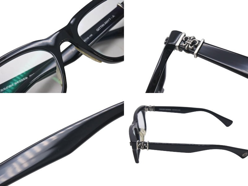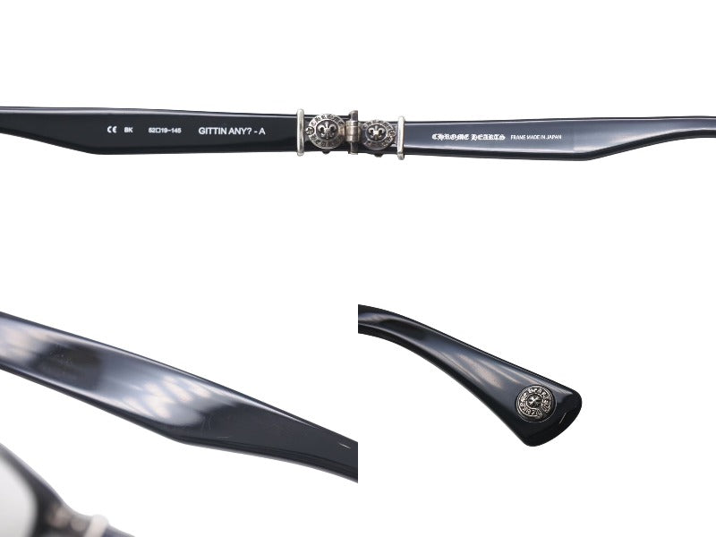 CHROME HEARTS クロムハーツ GITTIN ANY?-A メガネ 度入り サイズ52□19-145 ブラック プラスチック シルバー925 美品 中古 4c073434