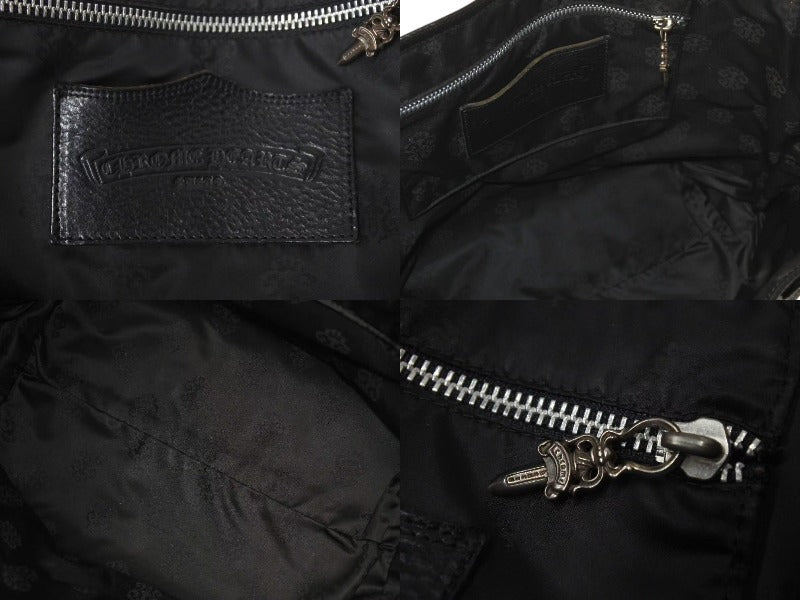 極美品 CHROME HEARTS クロムハーツ FSトートバッグ セメタリークロスパッチ レザー シルバー925 ブラック 中古 4c073443