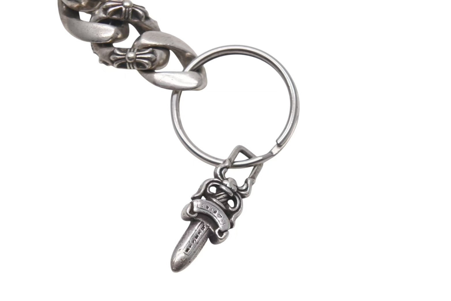 CHROME HEARTS クロムハーツ CLIP CHAIN FANCY LONG ファンシー ロングクリップ キーチェーン 8リンク ダガー 重量約85.0g 美品 中古 4c073886