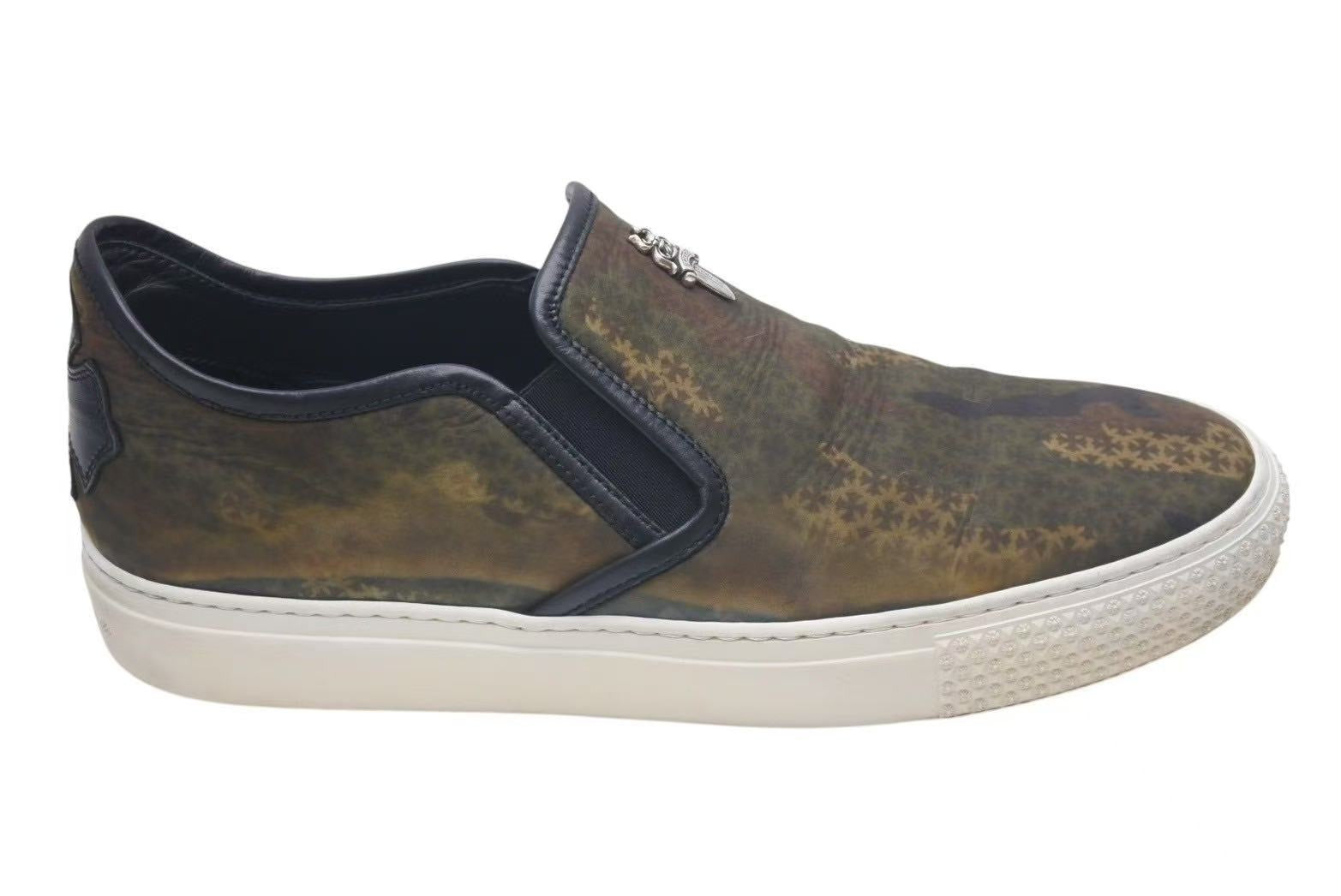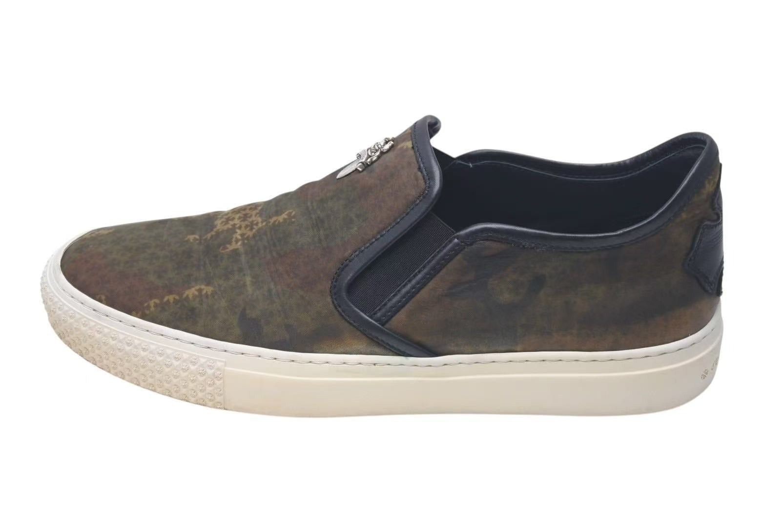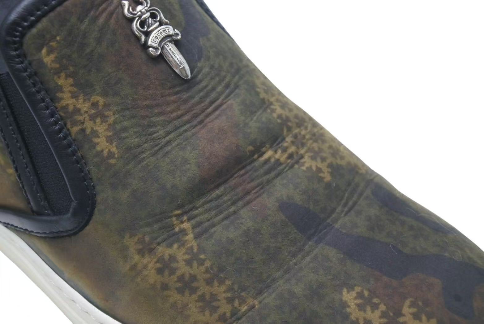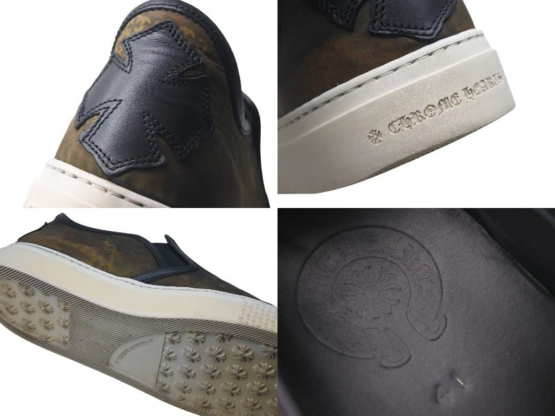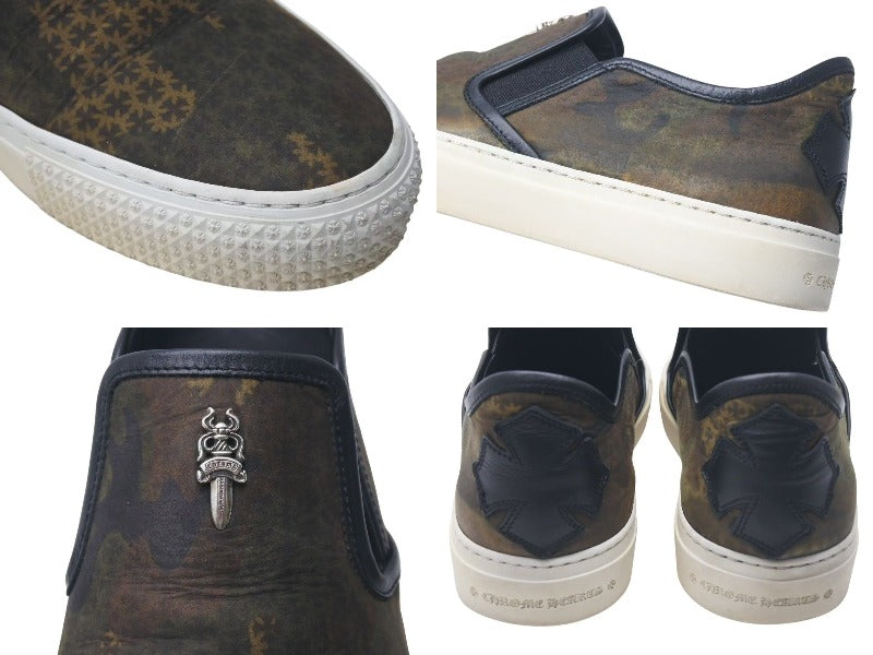 CHROME HEARTS クロムハーツ レザースリッポン サイズ41 25.5cm ダガー CHプラスパッチ カモフラ柄 カーキ 美品 中古 4c074115