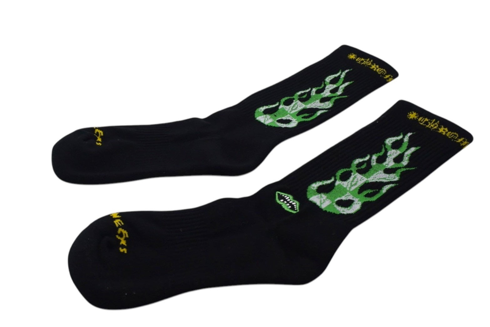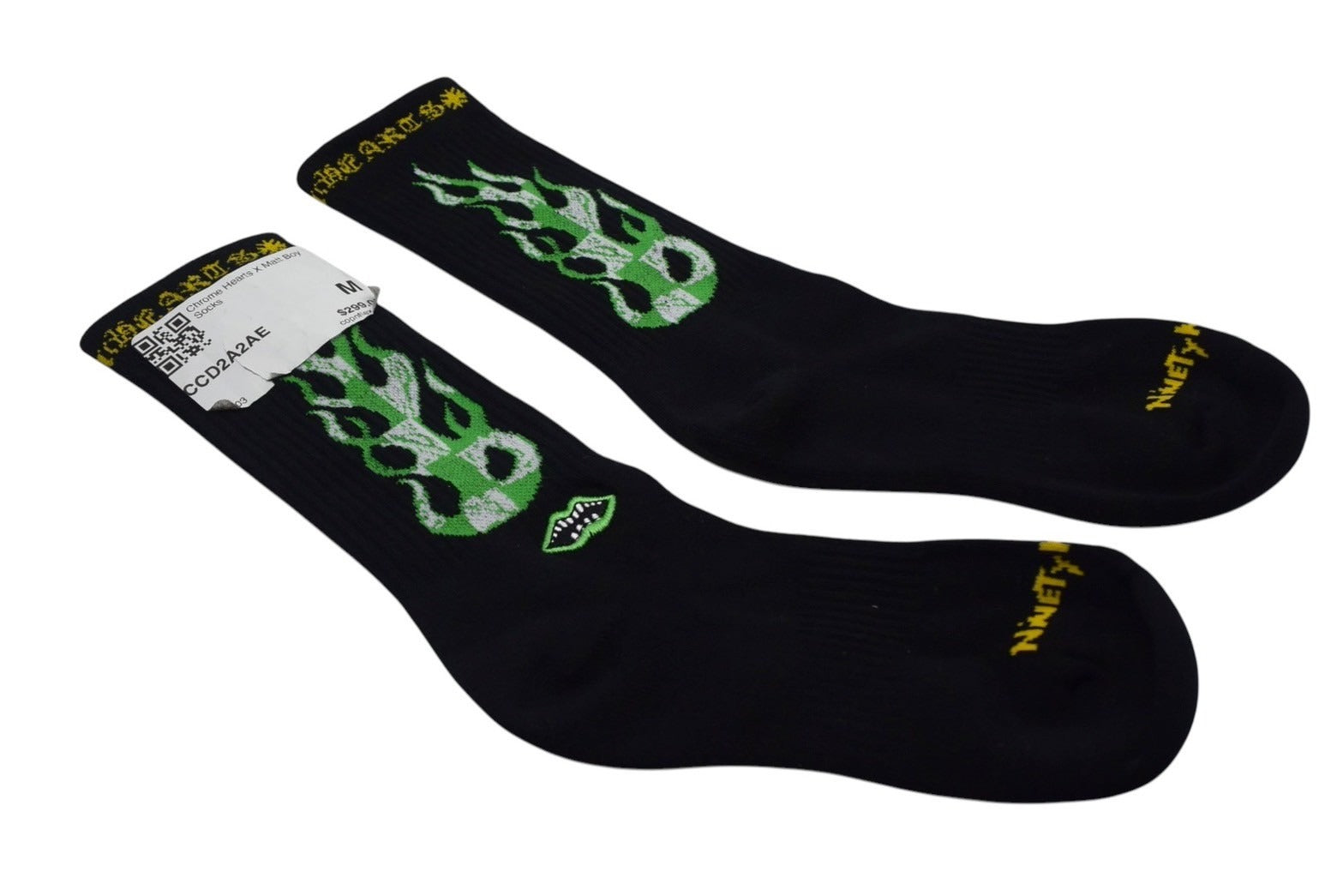 新品未使用 CHROME HEARTS クロムハーツ 靴下 マッティボーイ ファイヤー ソックス ロゴ刺繍 ブラック グリーン 中古 4c074347