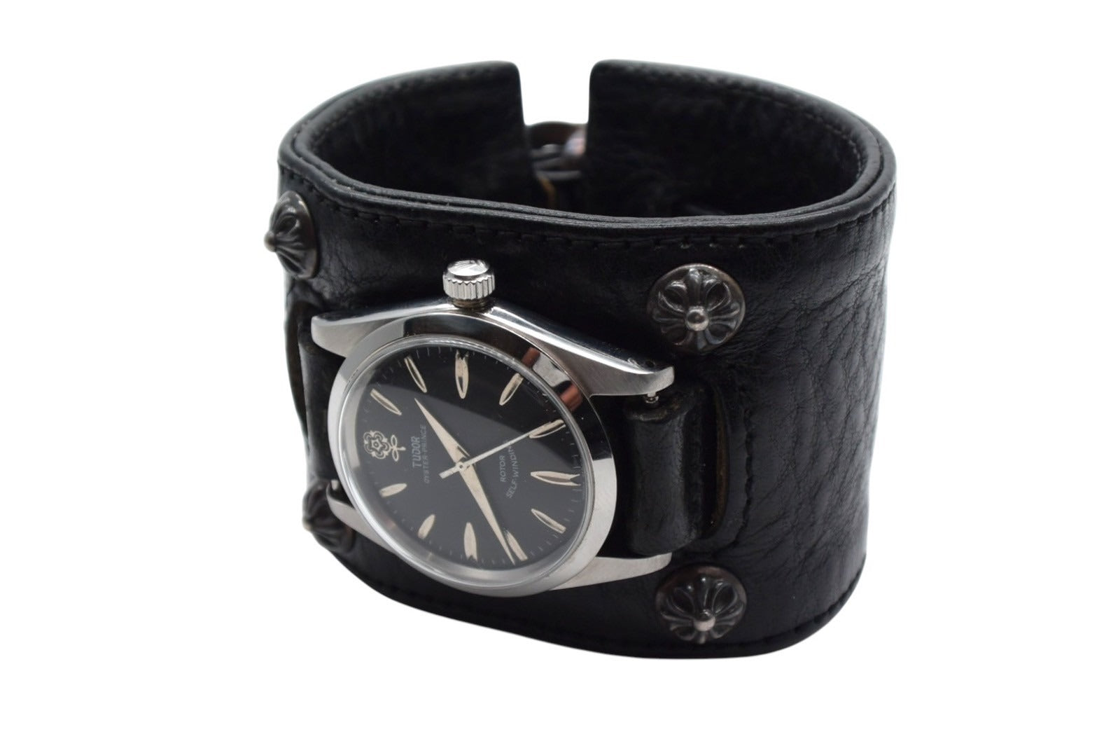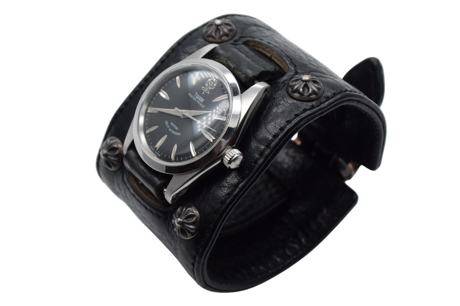 チューダーのヴィンテージウォッチにクロムハーツのレザーバンドを組み合わせた激レアアイテムです。