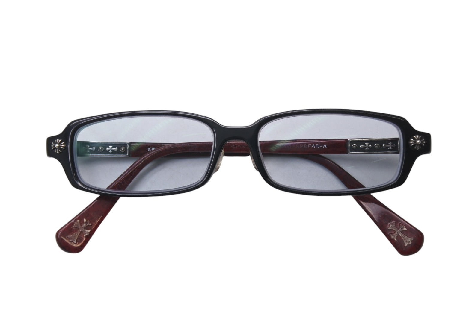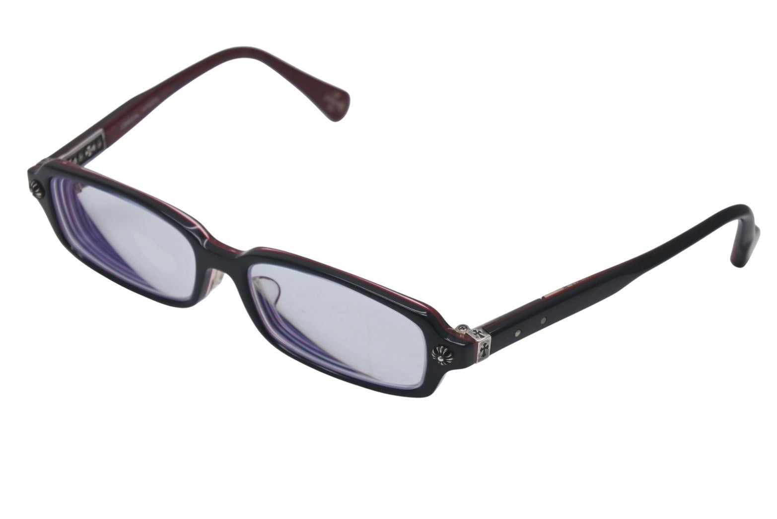 端部分にCHプラスが施され、テンプル先にはクロスデザインが施され、特徴的で存在感のあるアイテムです。