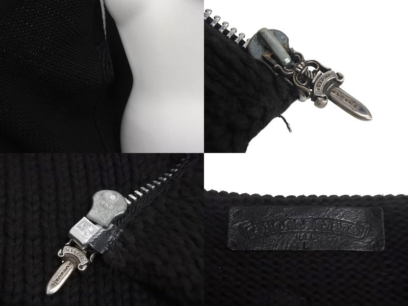 Chrome Hearts クロムハーツ クロスパッチ コットン ジップアップ ニットベスト サイズL 美品 中古 4c068283