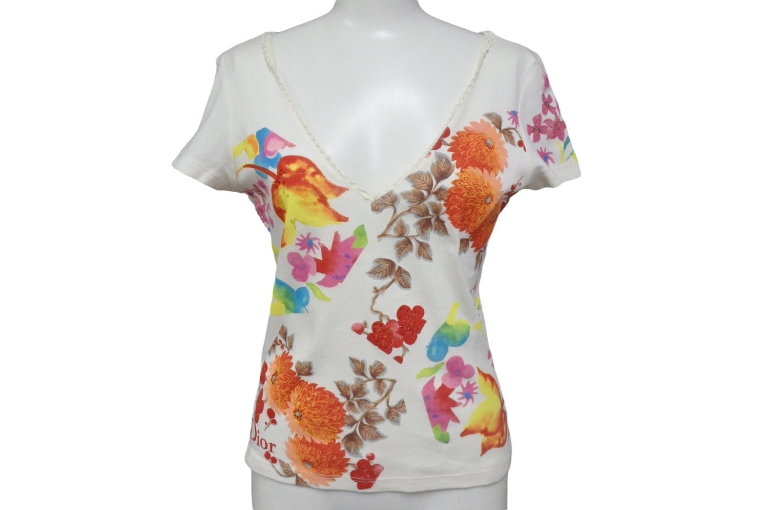極美品 Christian Dior クリスチャンディオール フローラルプリント Vネック半袖Tシャツ 6P16155471 サイズ38 ガリアーノ期 中古 4b000851