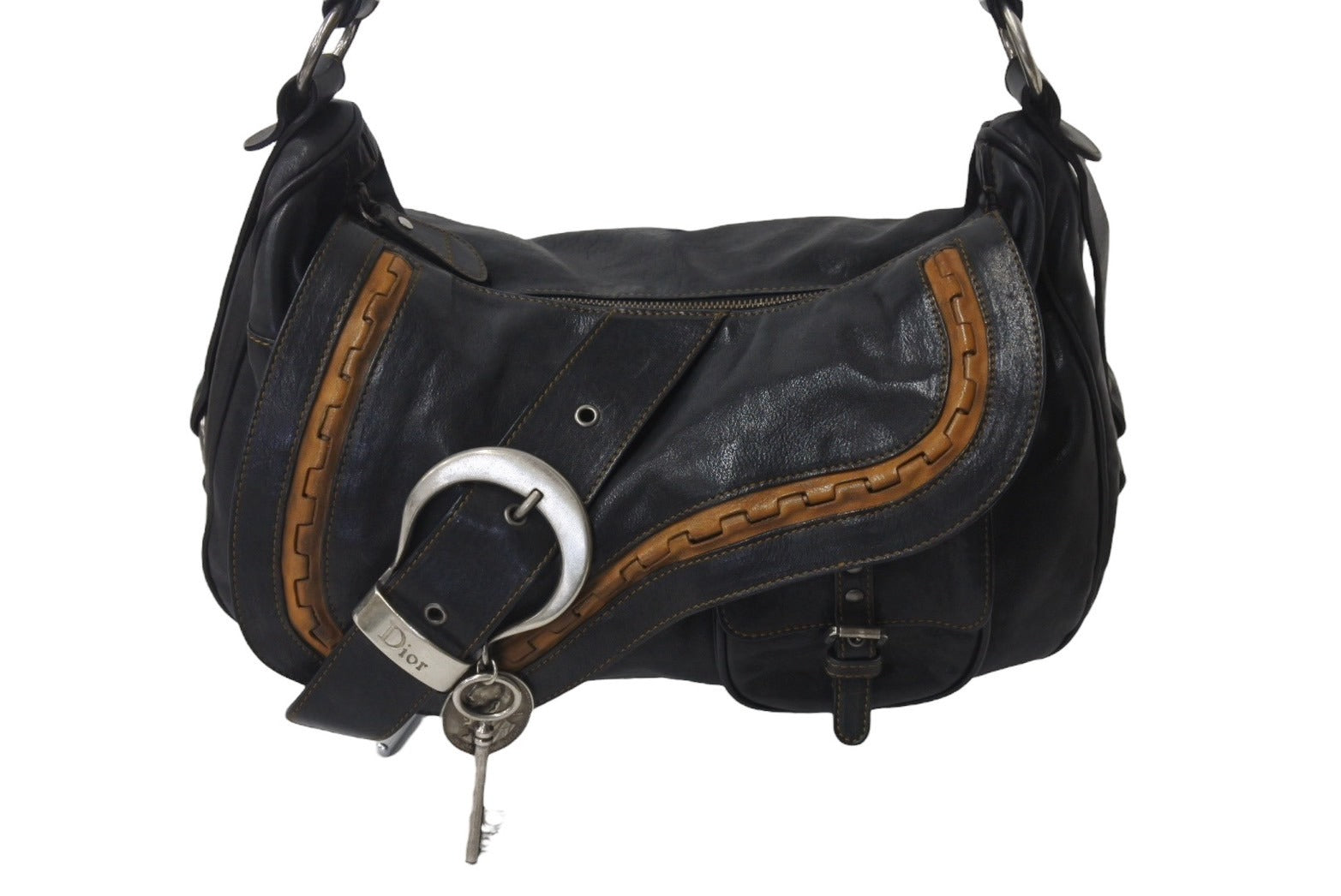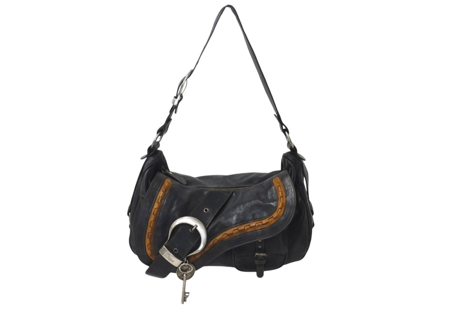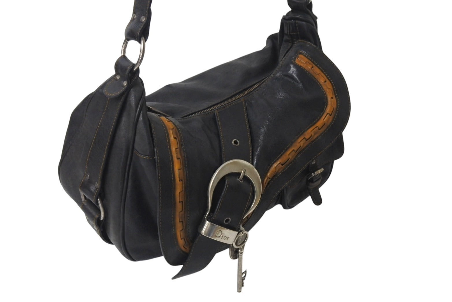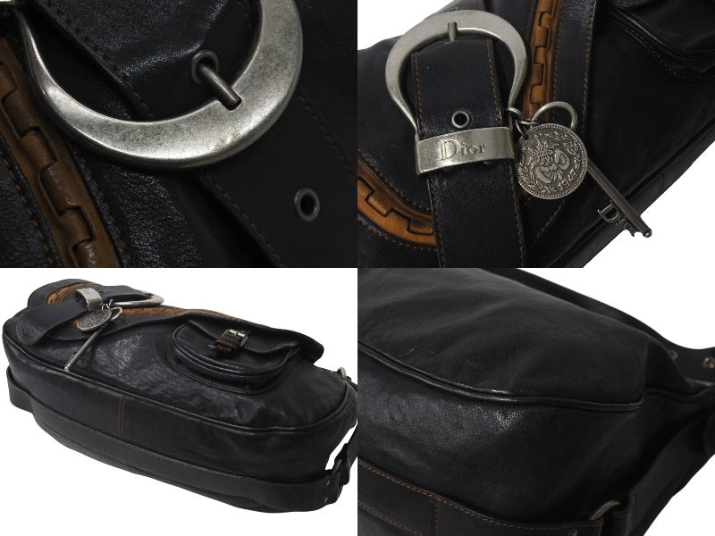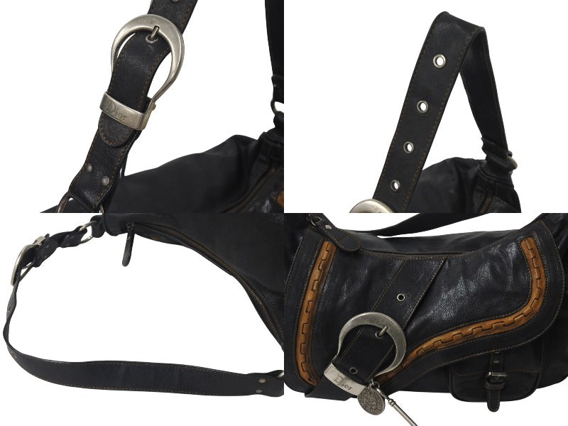 Christian Dior クリスチャンディオール ガウチョ サドルバッグ ハンドバッグ 16-MA-0067 ブラック レザー 美品 中古 4b000930