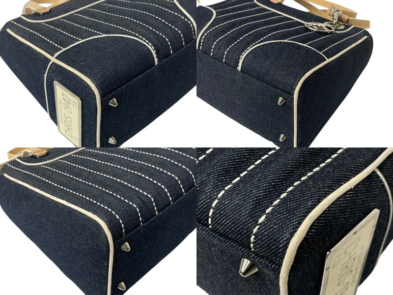 パイピングにスレ、汚れ、生地剥がれあり。表面にシミ、汚れあり。金具に少々スレ、小傷、くすみあり。ハンドルにスレ、しわ、歪み、パイピングに割れ、スレあり。その他使用感の少ない状態です。