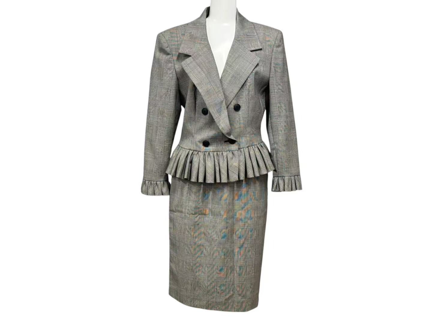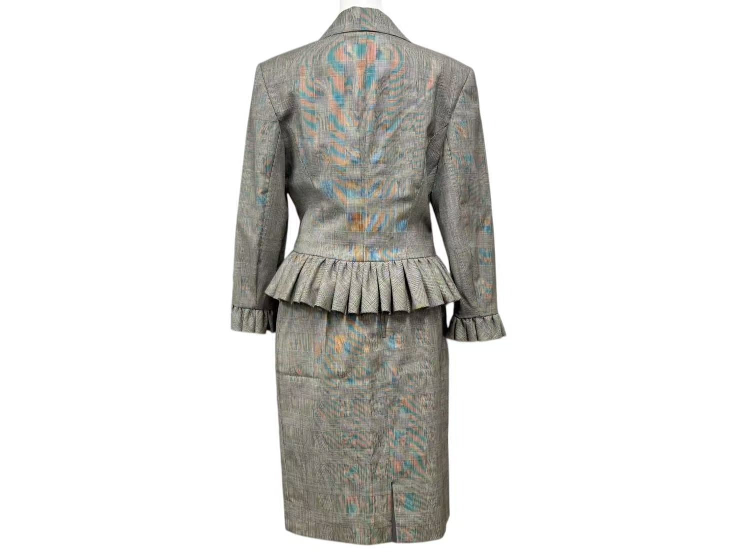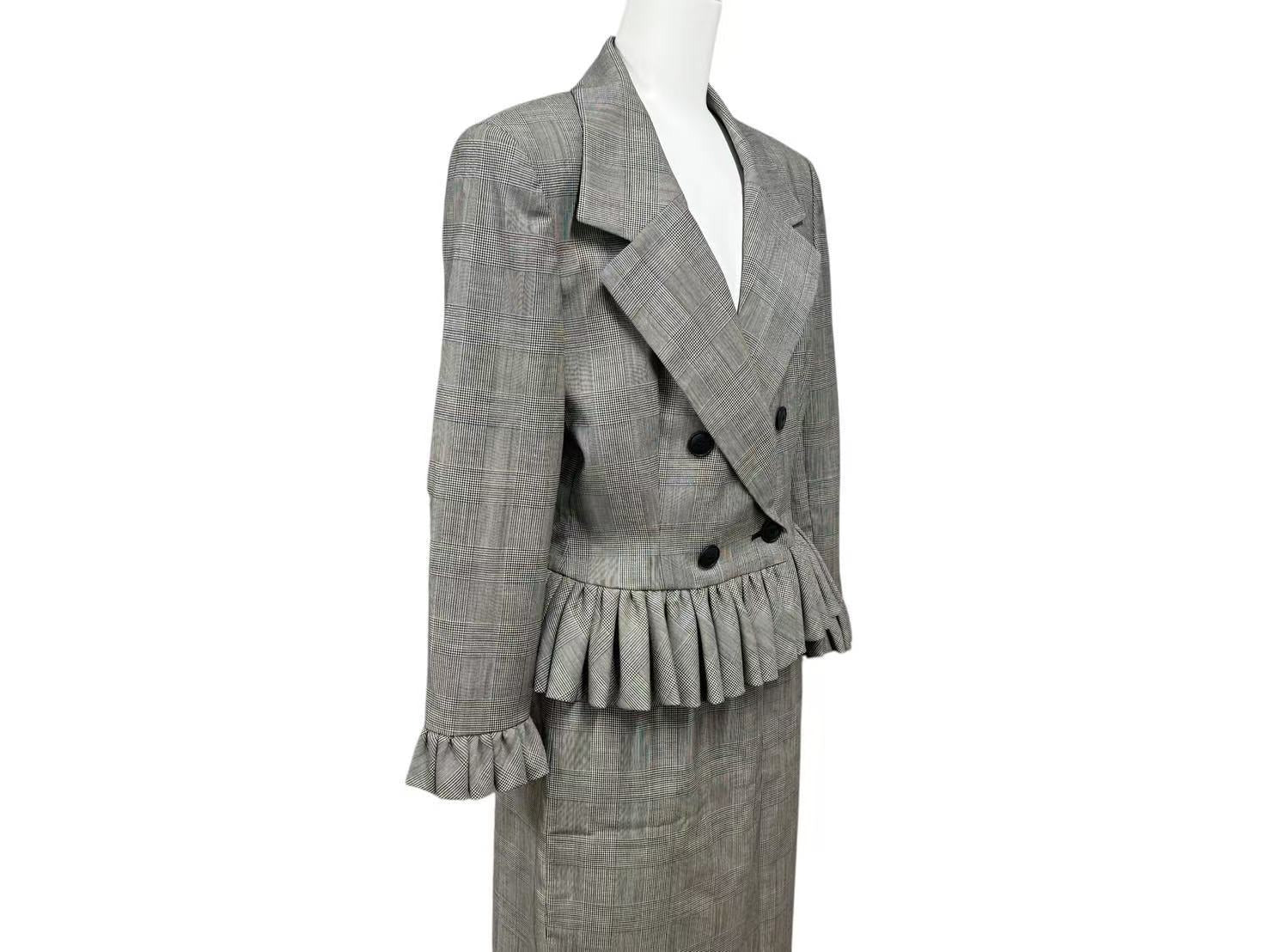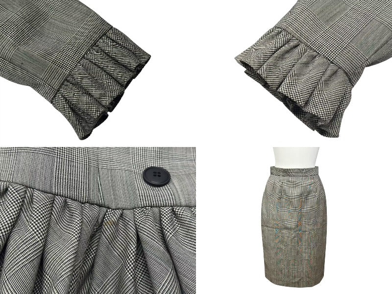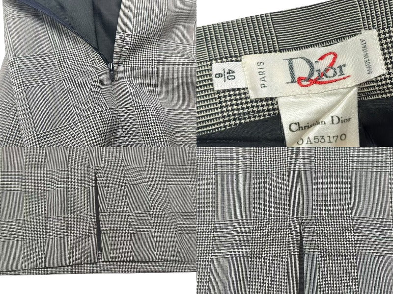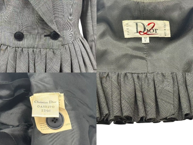 Christian Dior クリスチャンディオール テーラードジャケット スカート セットアップ グレー グレンチェック柄 サイズ40/6 美品 中古 4b002534