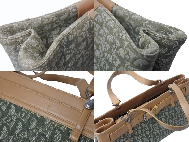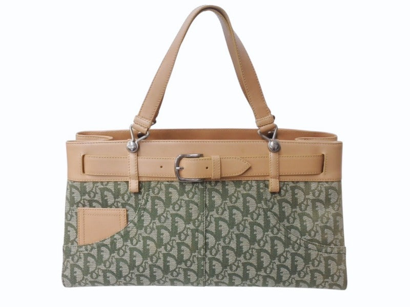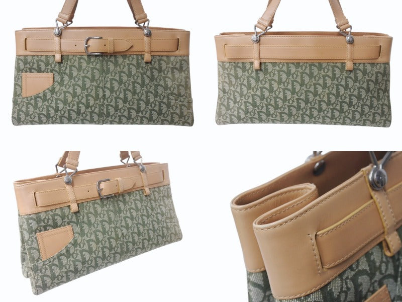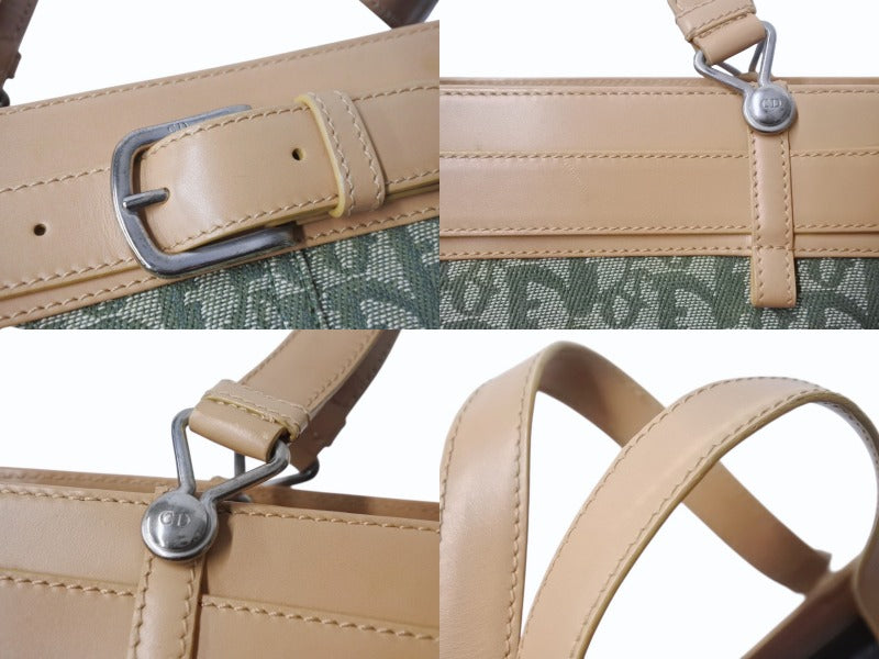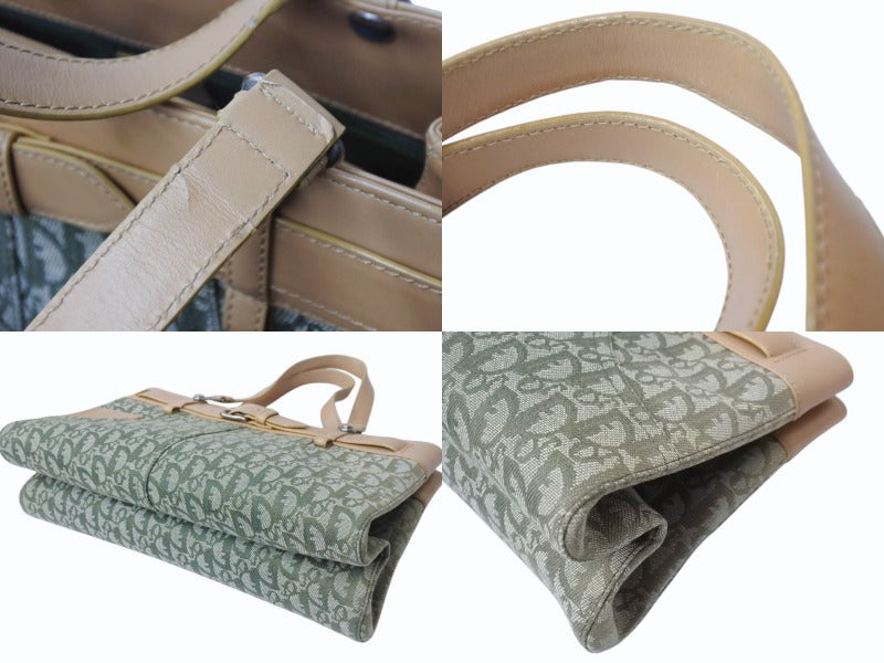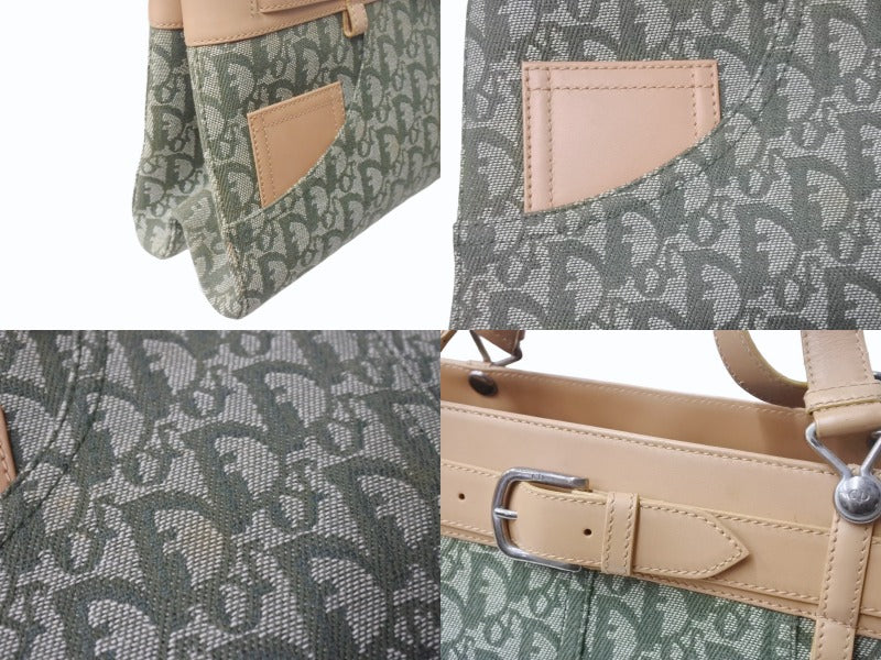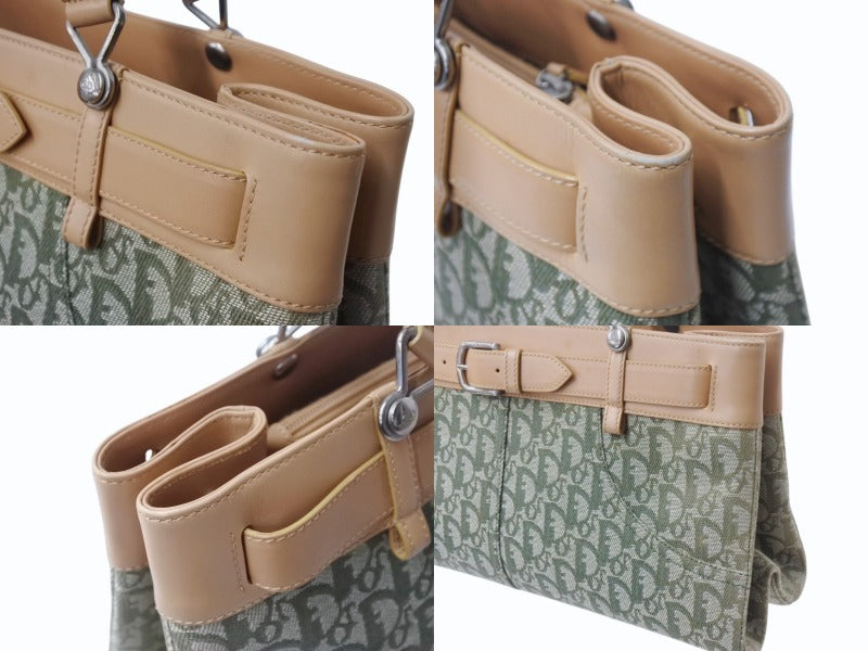 ChristianDior クリスチャンディオール トロッター ハンドバッグ BM0081 コットンキャンバス グリーン ベージュ 美品 中古 4b002589