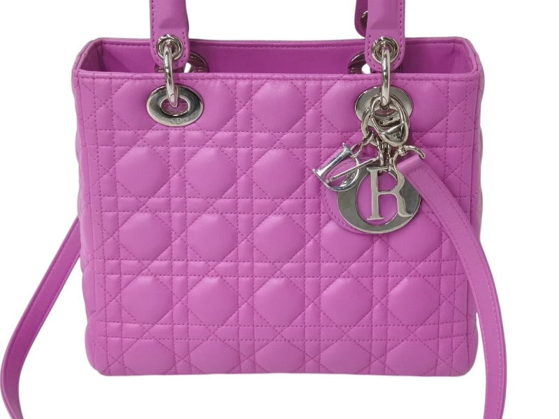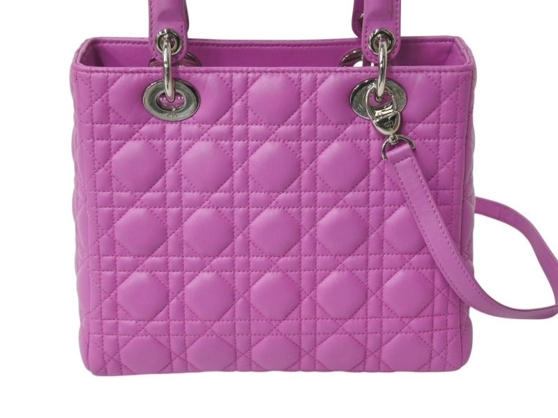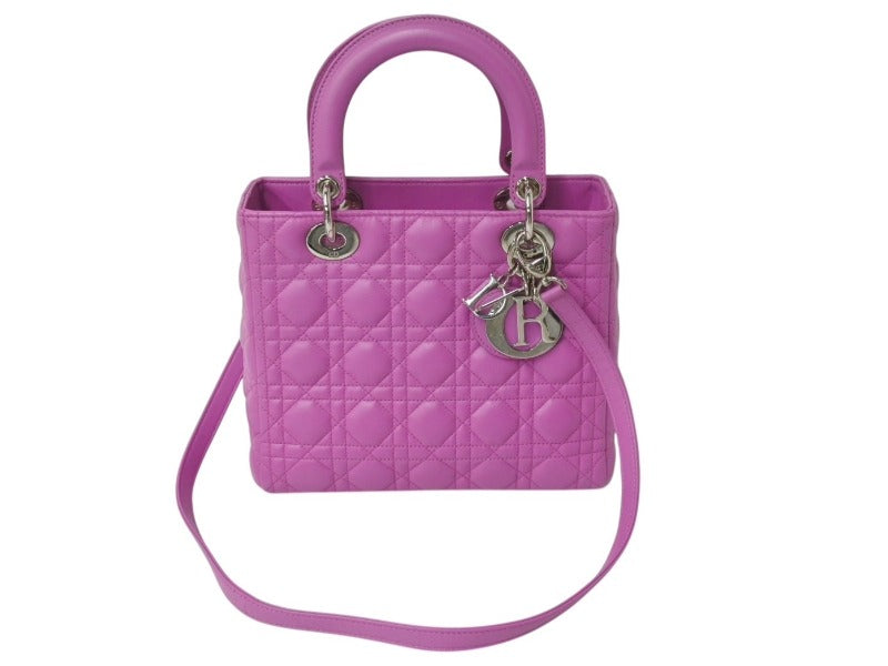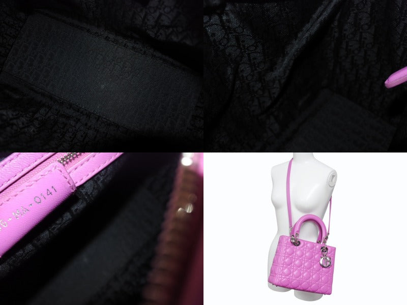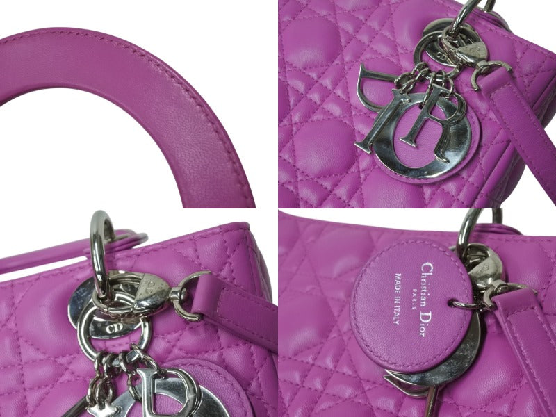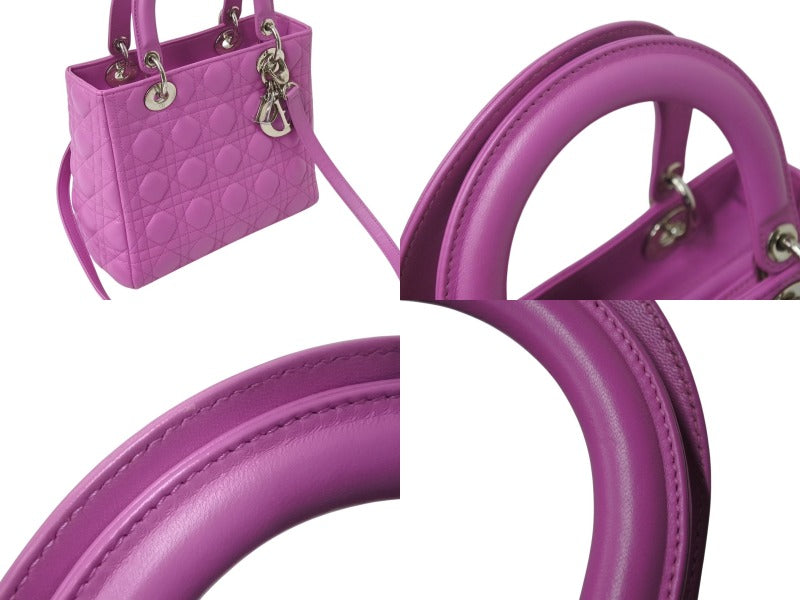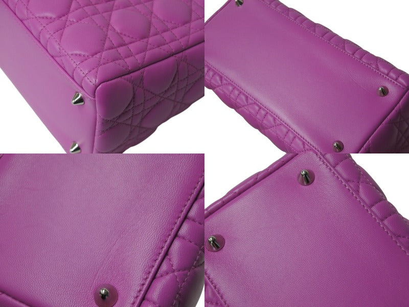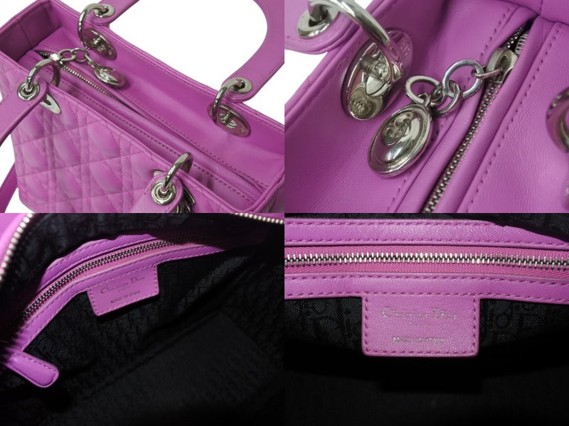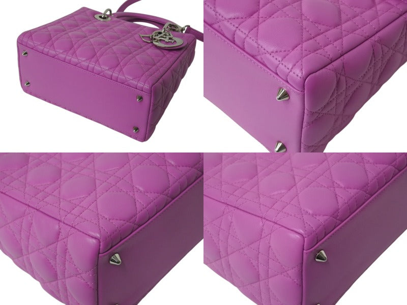 CHRISTIAN DIOR クリスチャンディオール レディディオール ミディアム 2WAY ハンドバッグ カナージュ パープル シルバー 美品 中古 4b002632