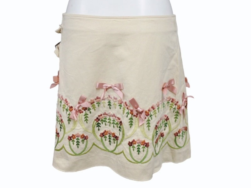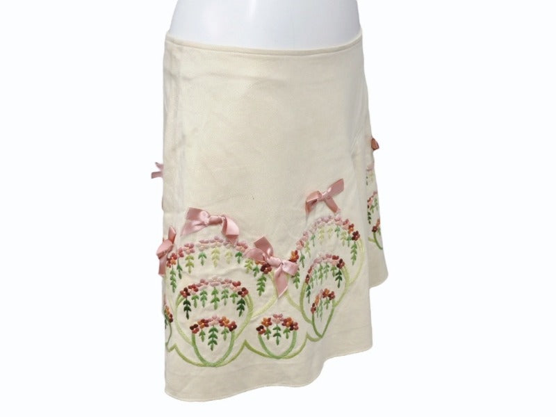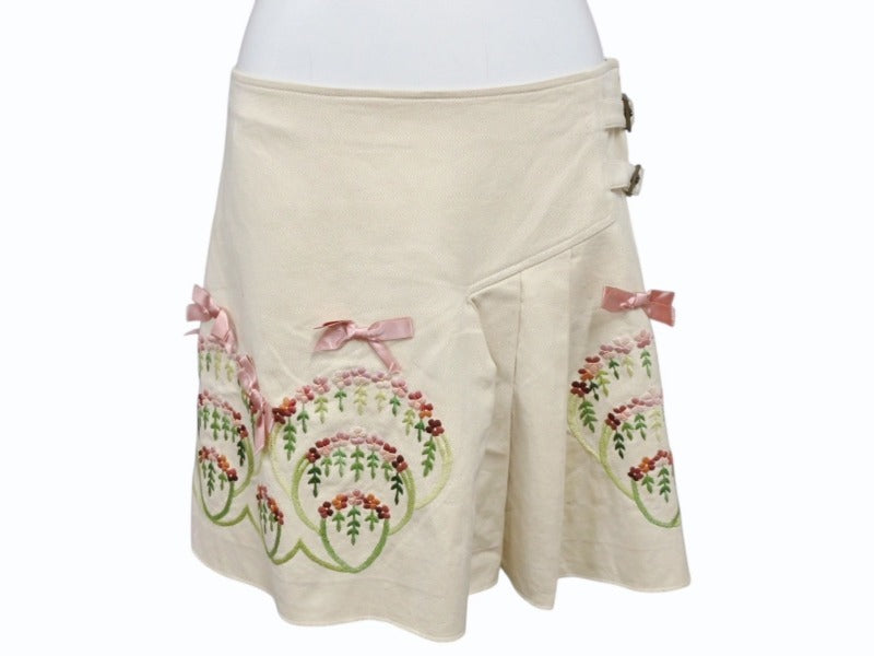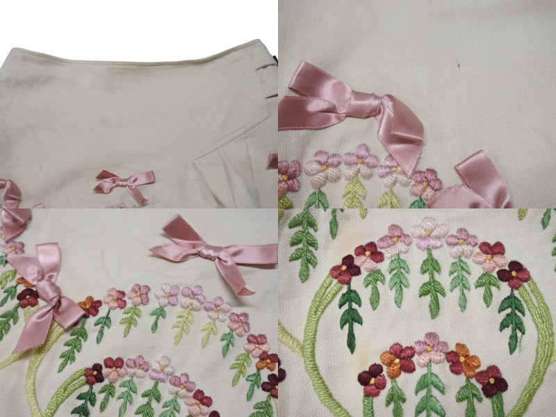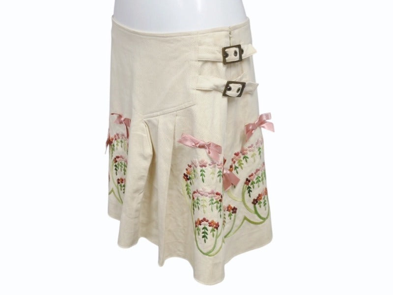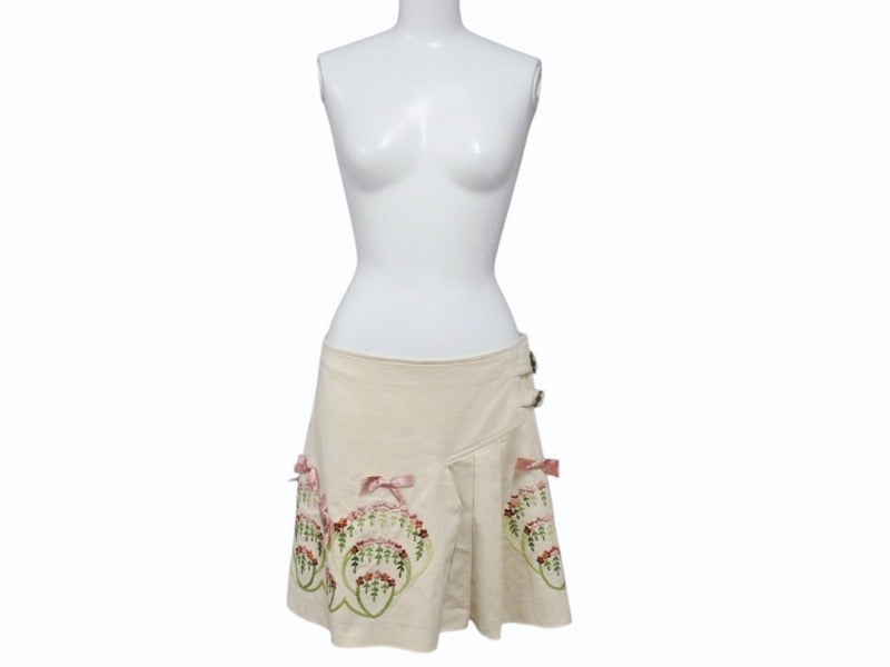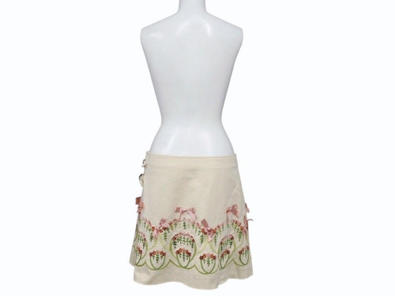 Christian Dior クリスチャンディオール スカート 花柄 2A12033120 サイズ8 ガリアーノ期 刺繍 ベージュ 中古 4b004027