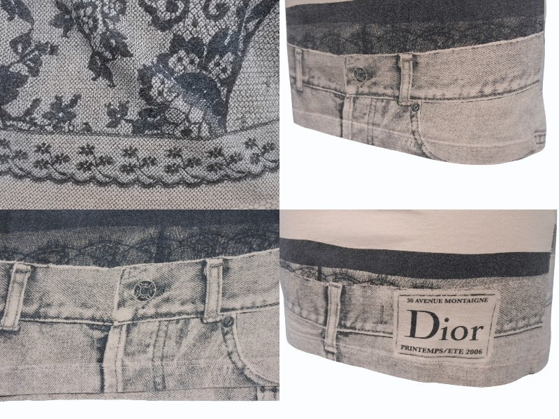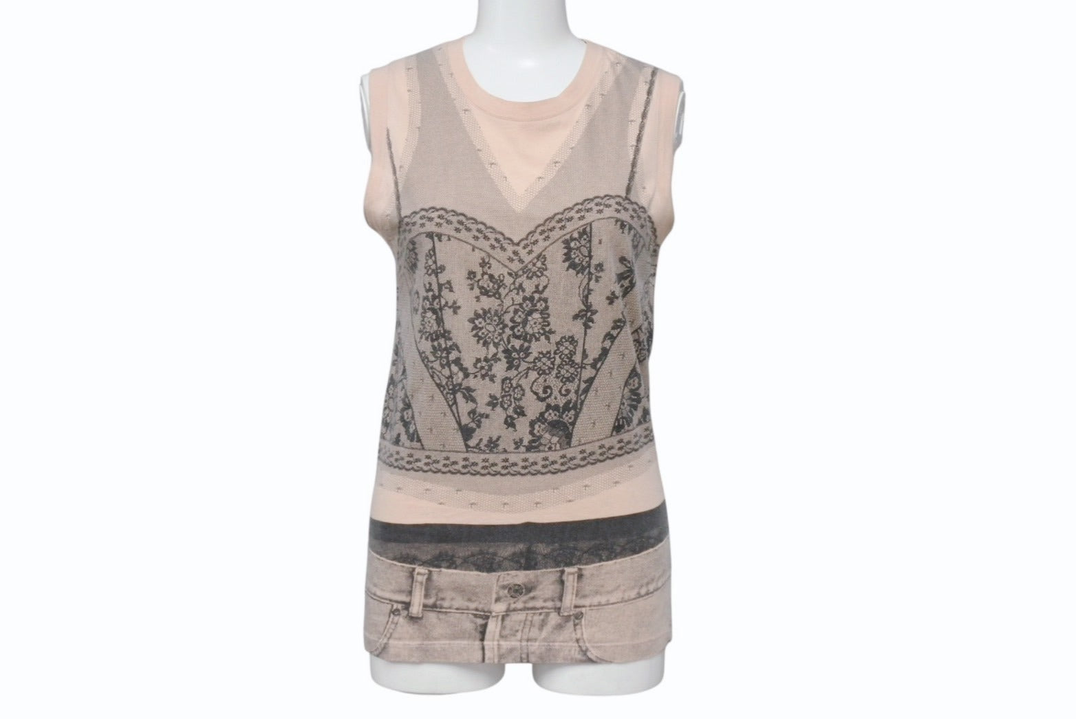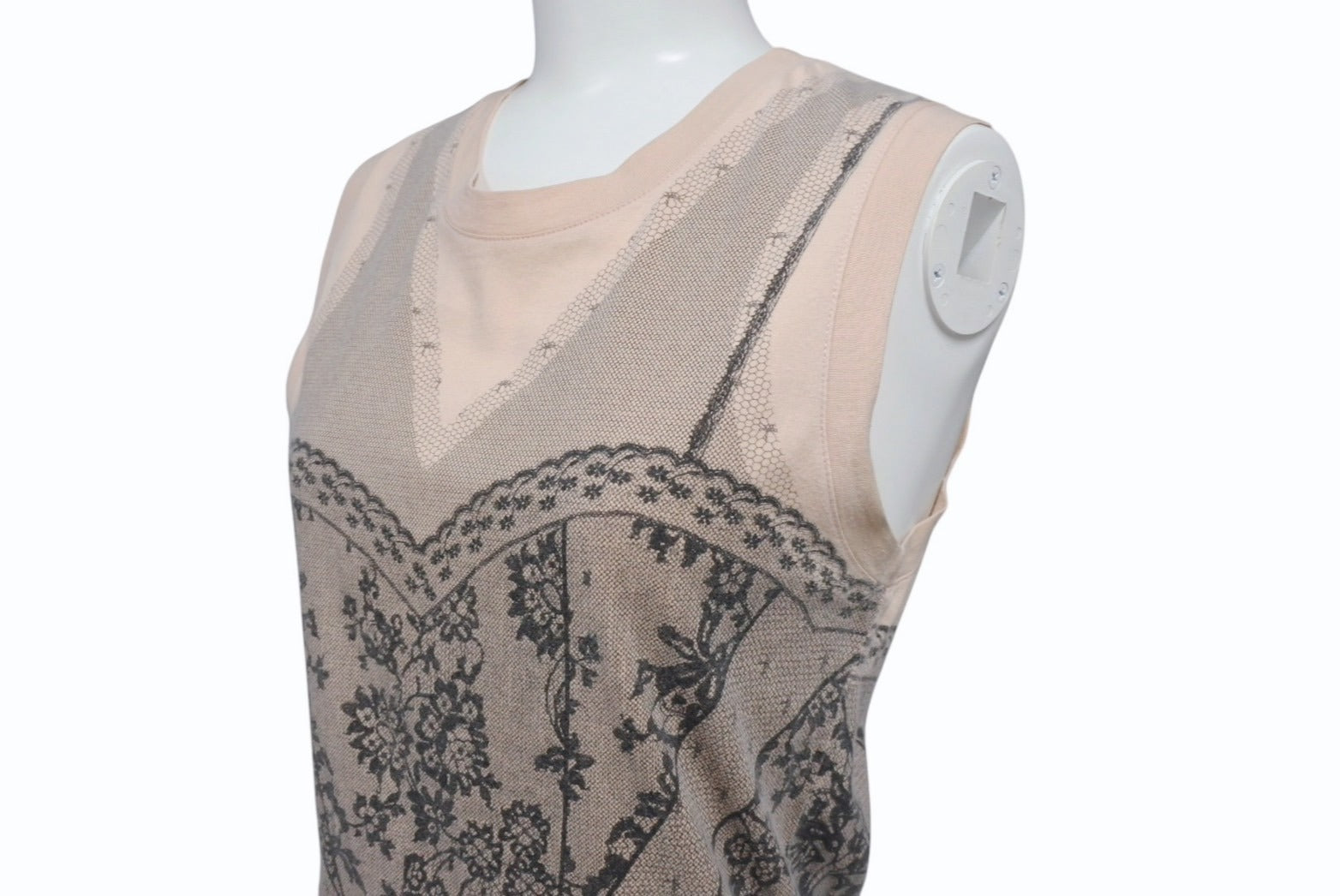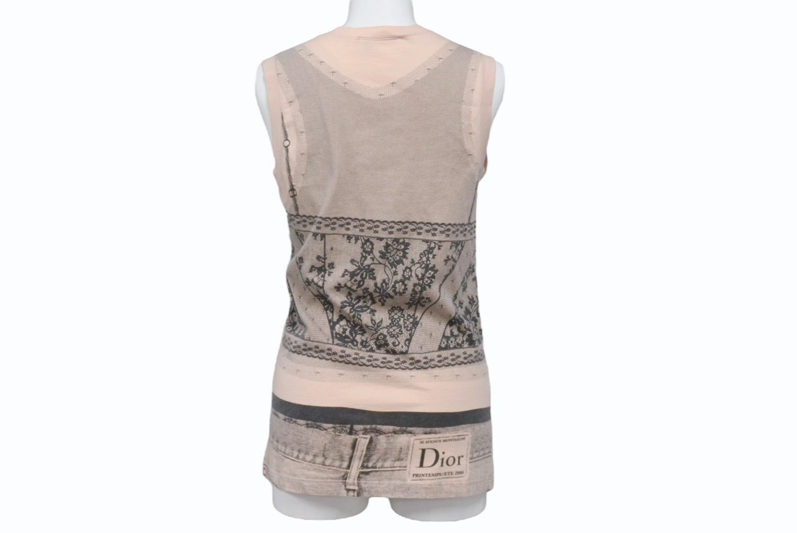 Christian Dior クリスチャンディオール タンクトップ 6E16155001 サイズ6 ガリアーノ期 プリント ピンクベージュ 中古 4b004064