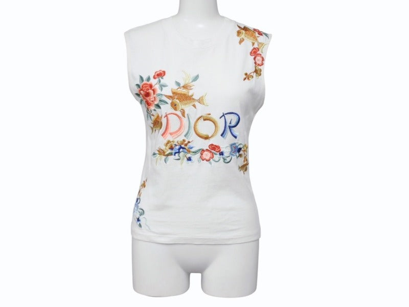 Christian Dior クリスチャンディオール タンクトップ ノースリーブ 2P12155001 サイズ38 ホワイト フラワー ガリアーノ期 美品 中古 4b004577