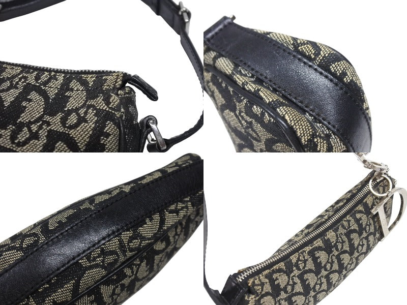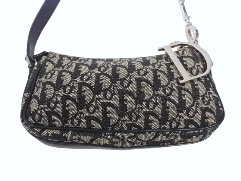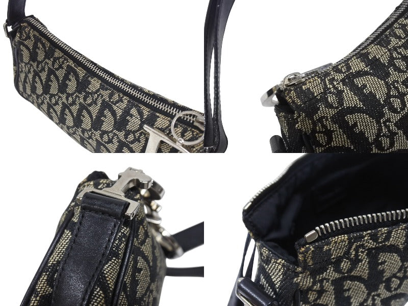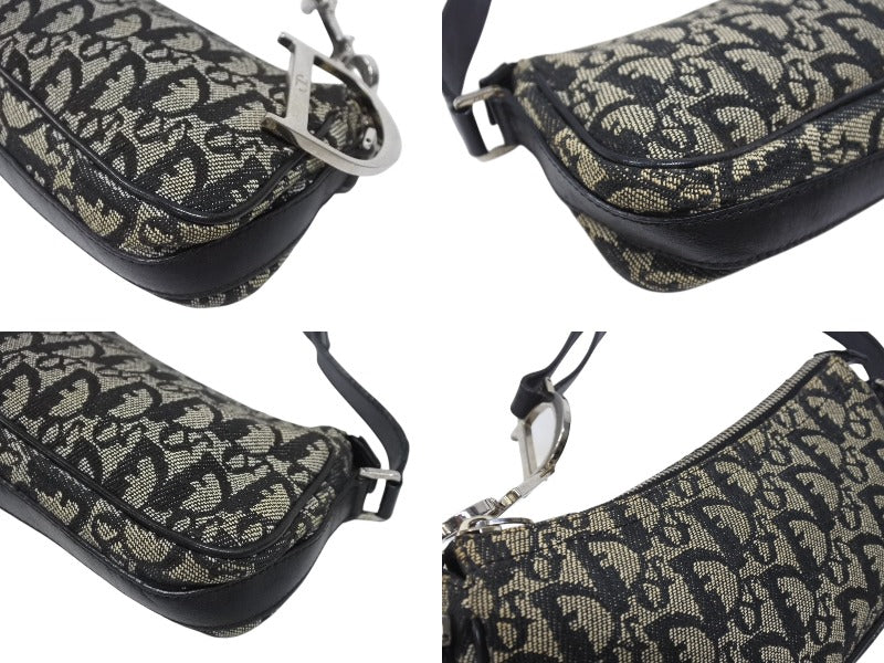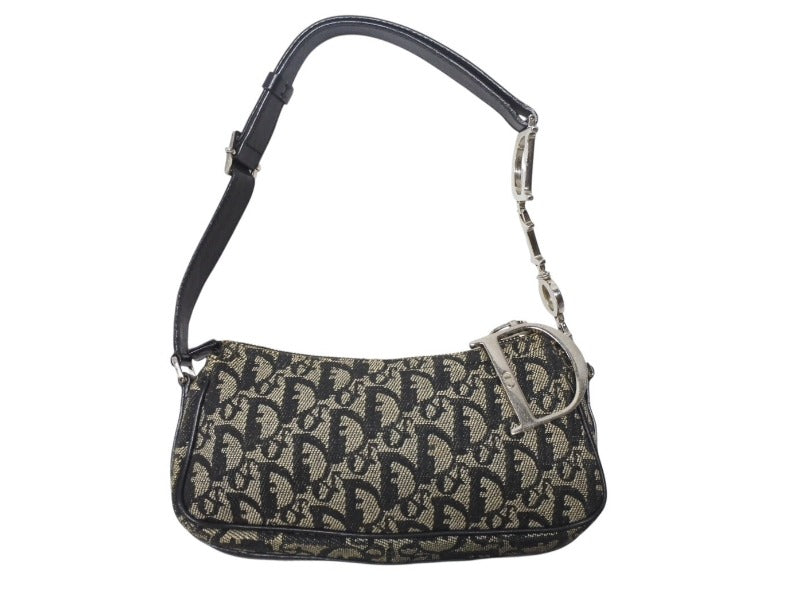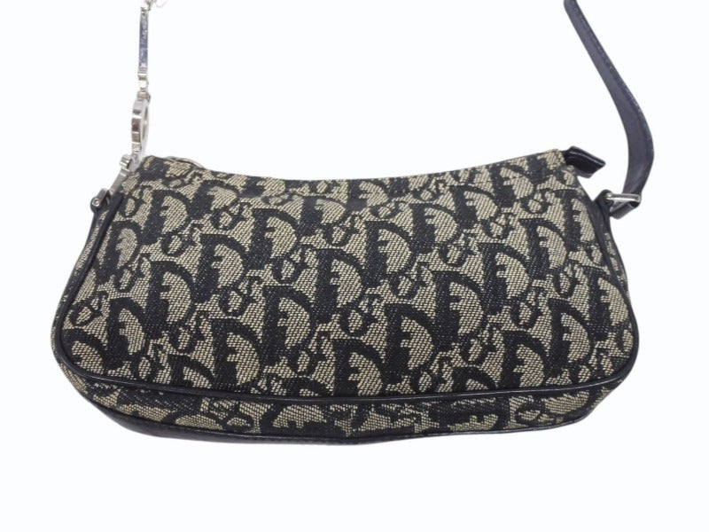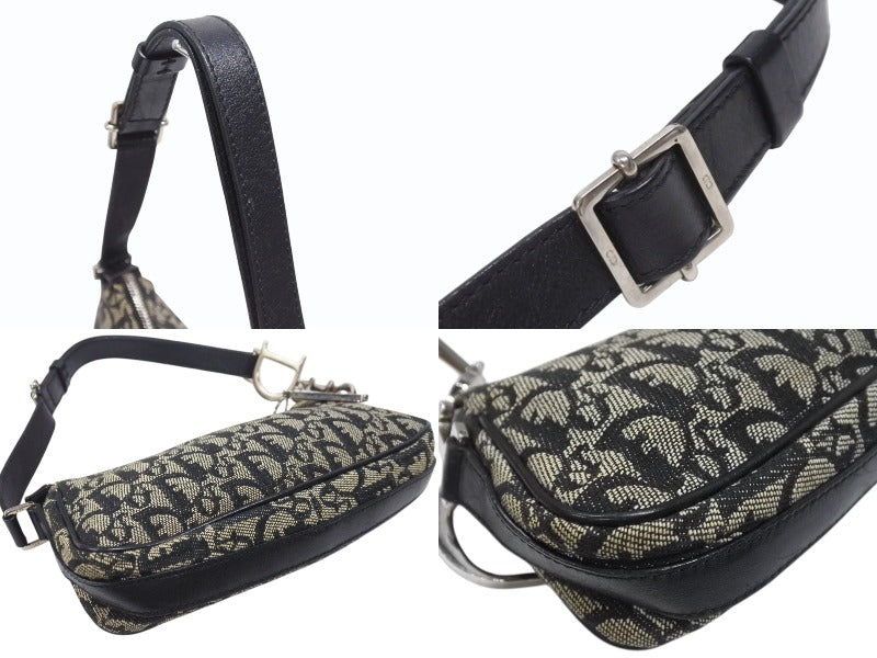 Christian Dior クリスチャンディオール トロッター ワンショルダーバッグ キャンバス レザー ネイビー 美品 中古 4b005164