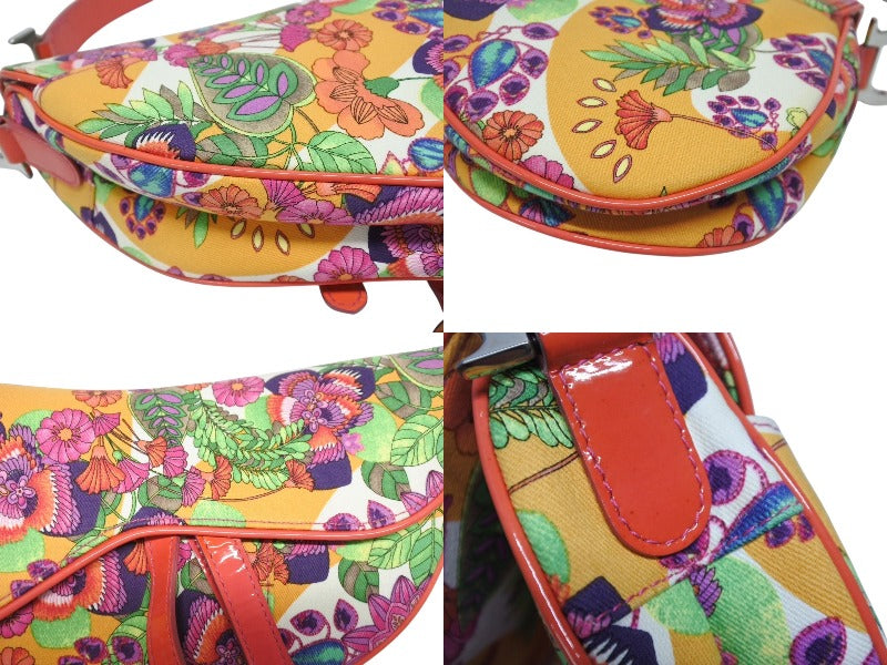 開口部レザーにシワ、歪み、少々ヤケあり。表面サイドパテントに生地剥がれあり。ショルダーストラップに少々ヤケあり。内側にシミあり。金具に少々スレ、小傷あり。その他使用感少なく極美品です。