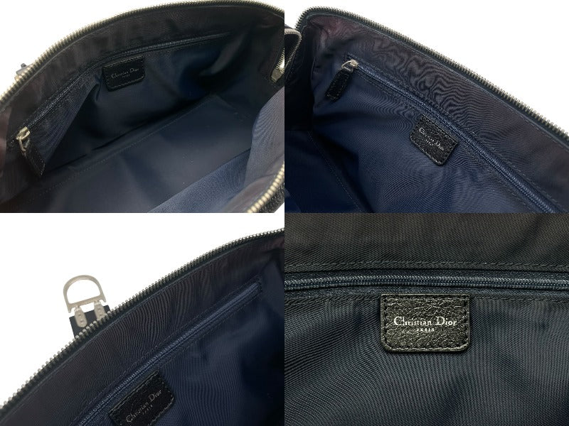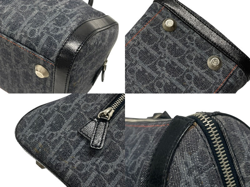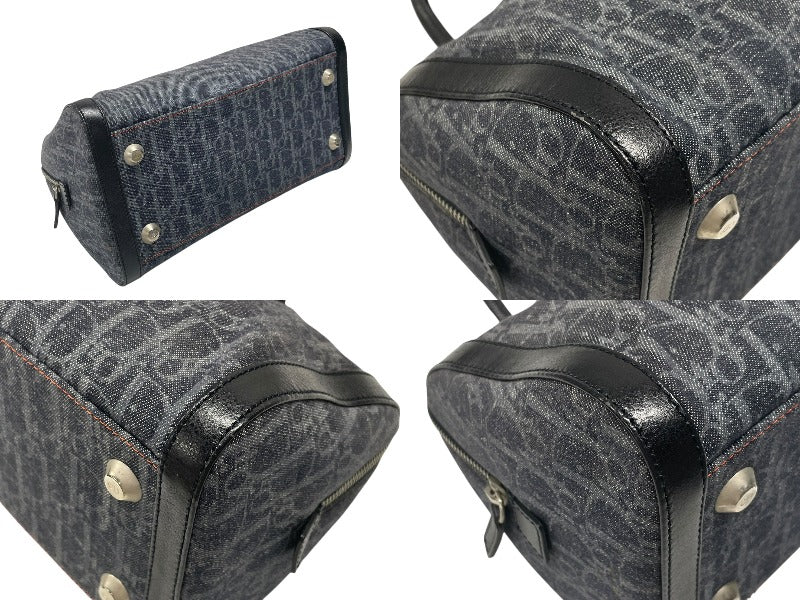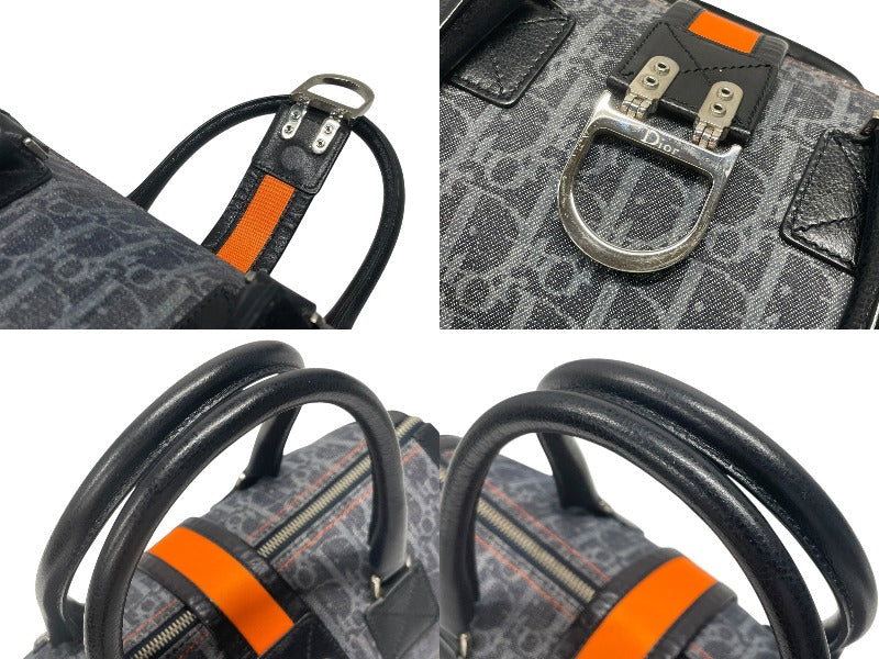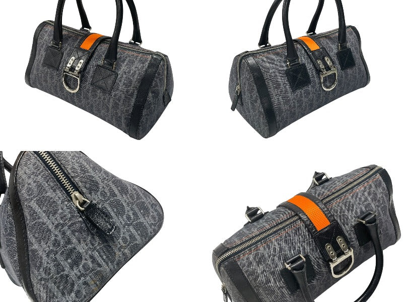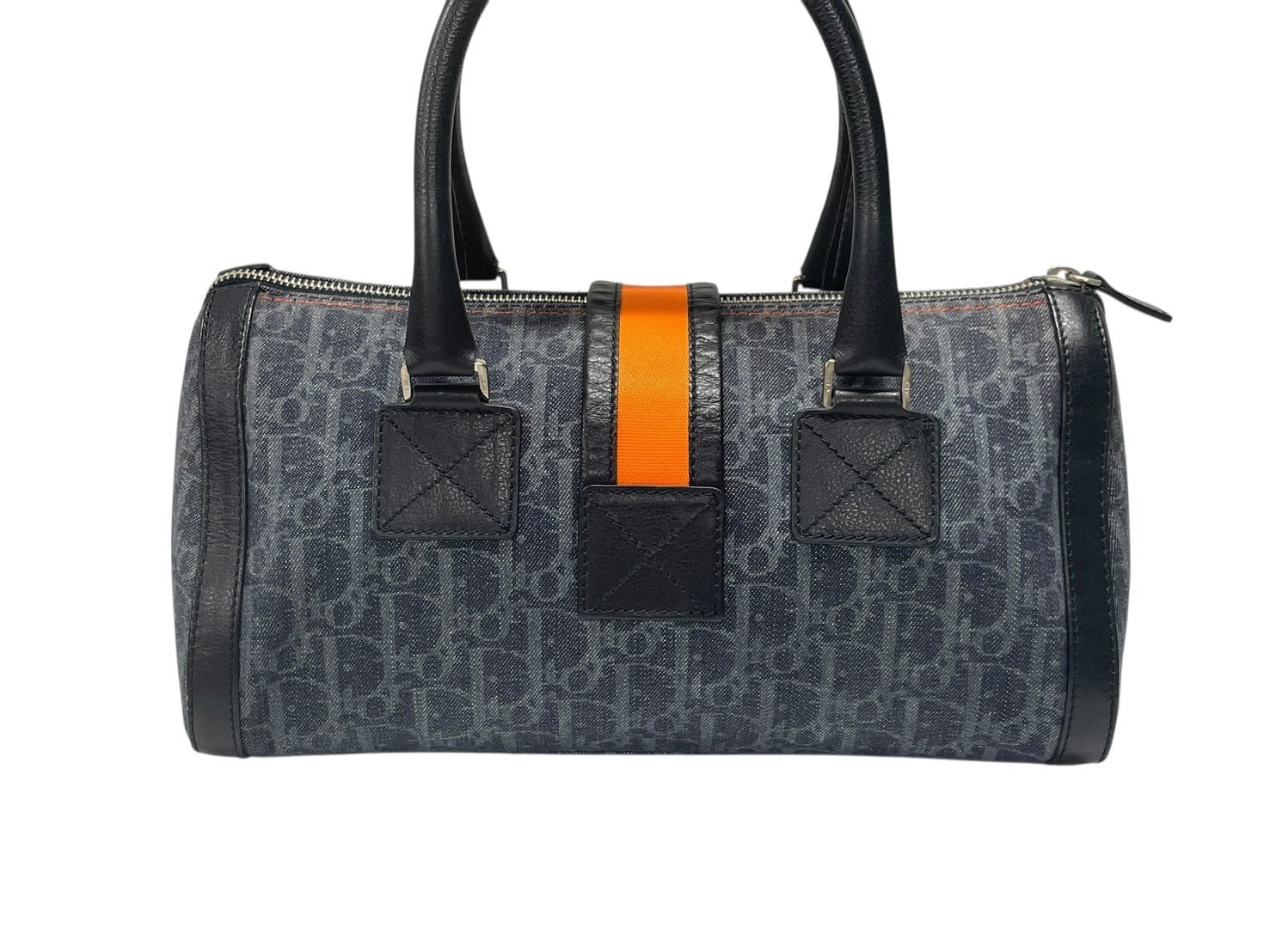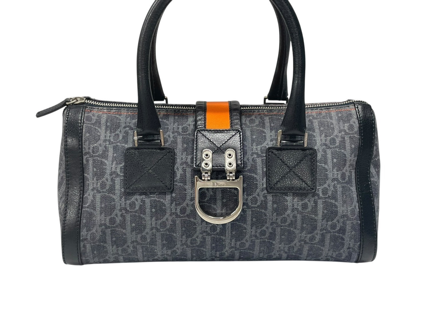 極美品 CHRISTIAN DIOR クリスチャンディオール トロッターライン ハンドバッグ 02-B0-1015 ネイビー オレンジ シルバー金具 中古 4b007623