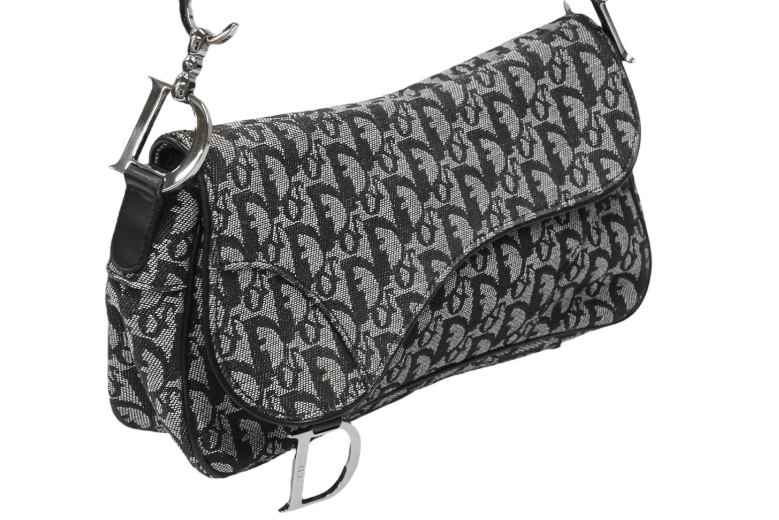 Christian Dior クリスチャンディオール トロッター サドル ワンショルダーバッグ 01-RU-0035 ブラック ガリアーノ期 美品 中古 4b008397