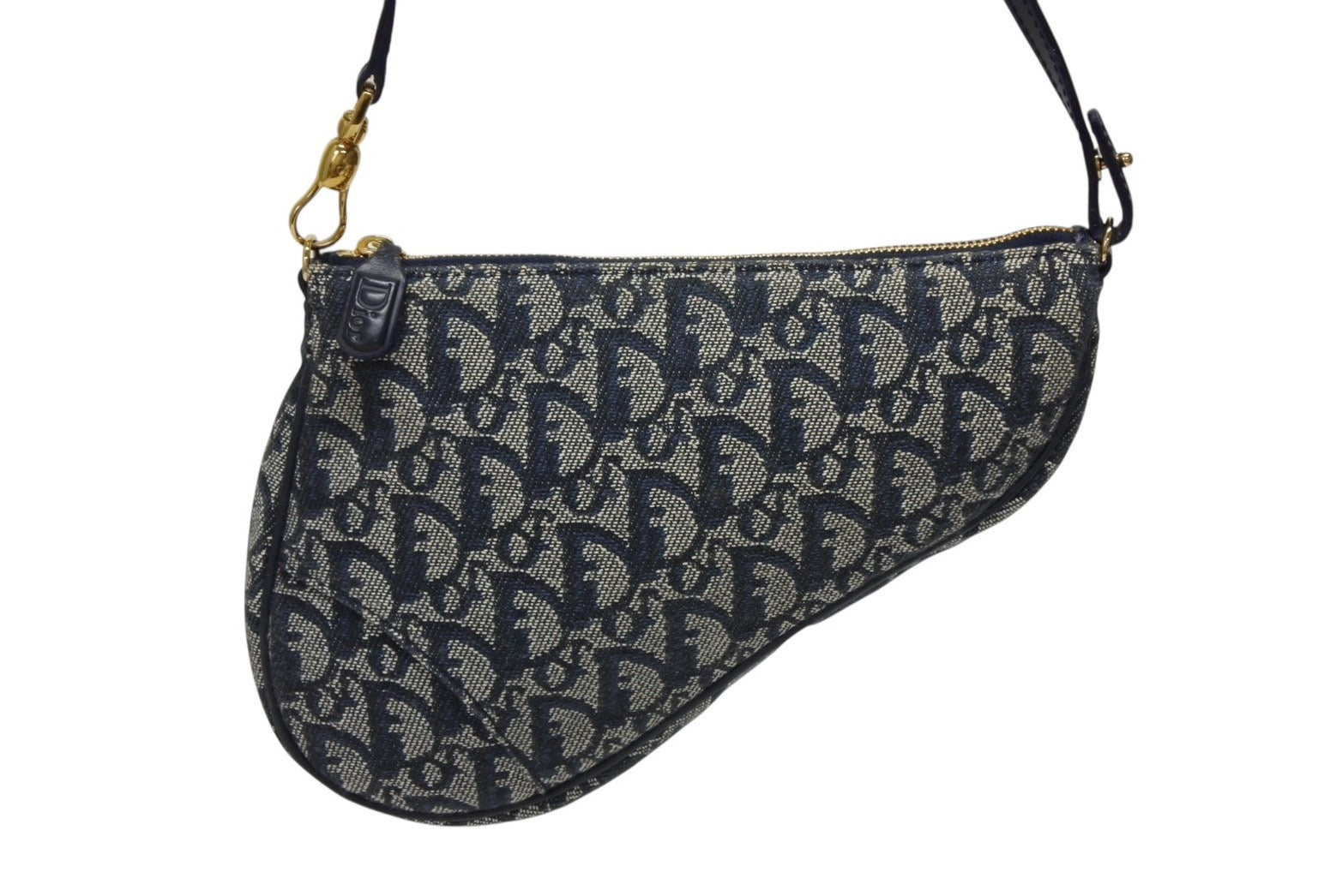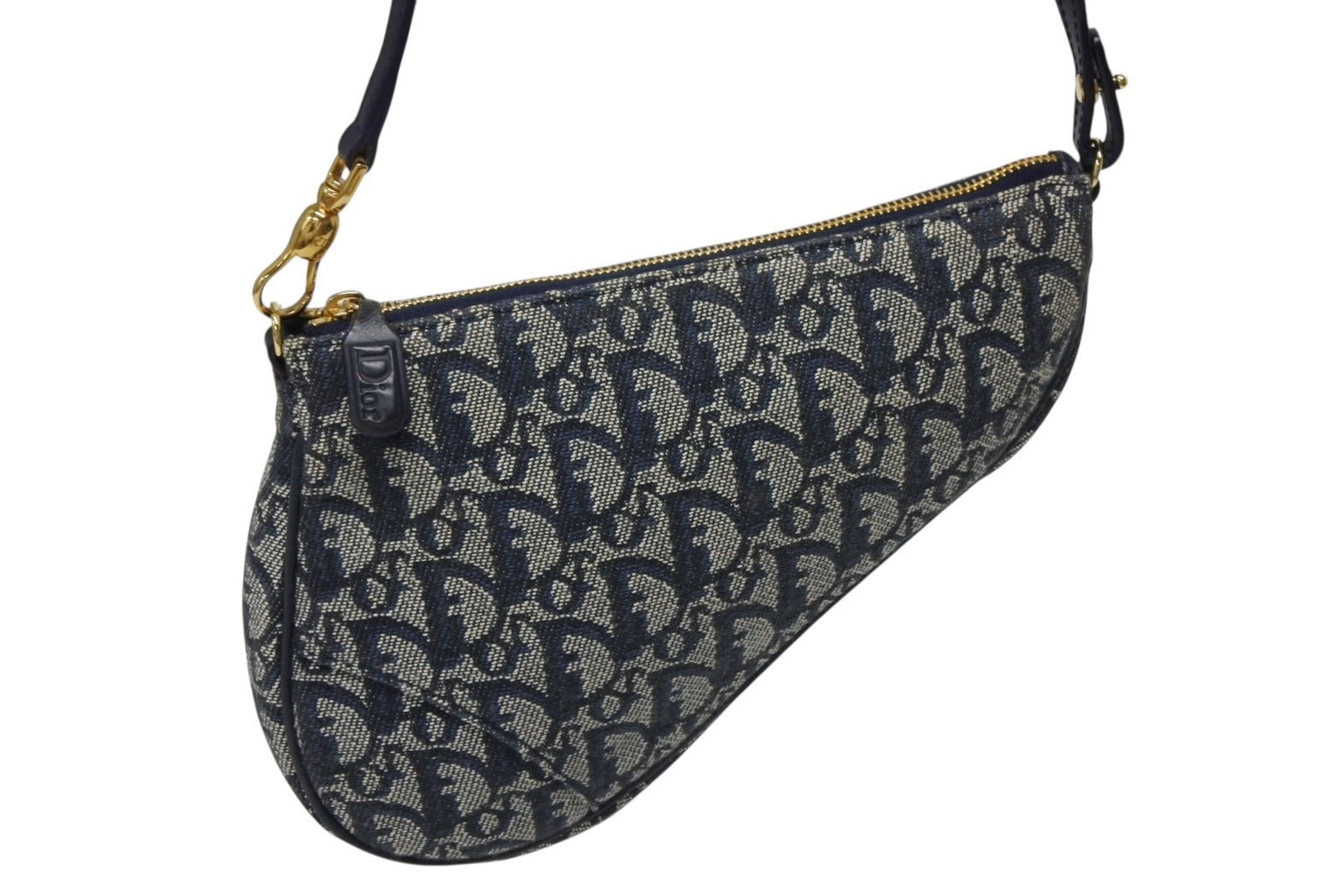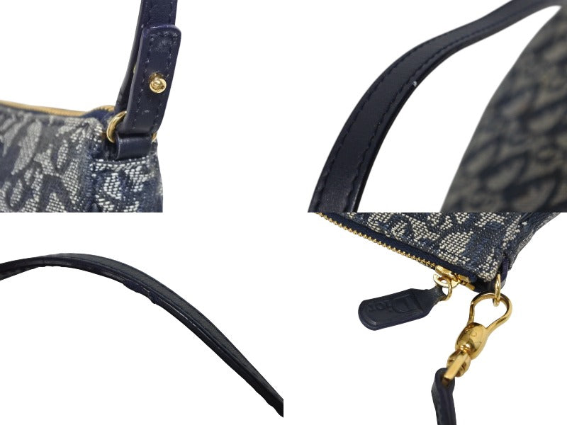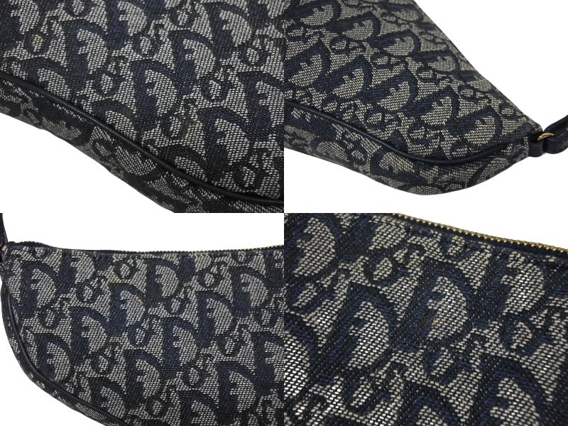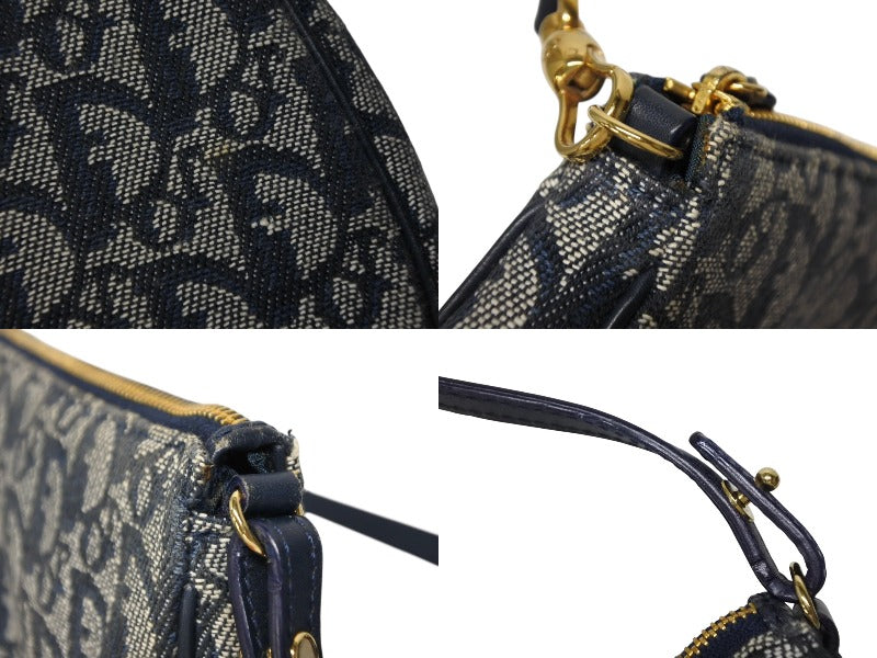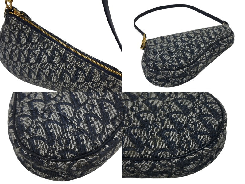 CHRISTIAN DIOR クリスチャンディオール トロッター サドルバッグ ワンショルダーバッグ サドルポーチ ネイビー 美品 中古 4b009143