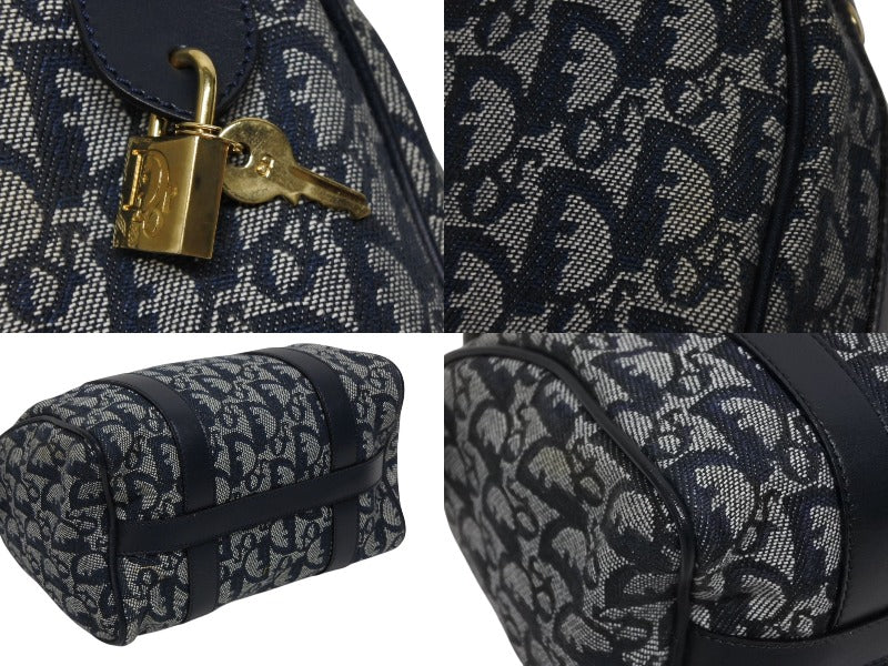 極美品 Christian Dior ディオール ハンドバッグ ミニボストン トロッター ネイビー スピーディ 20cm 中古 4b009870