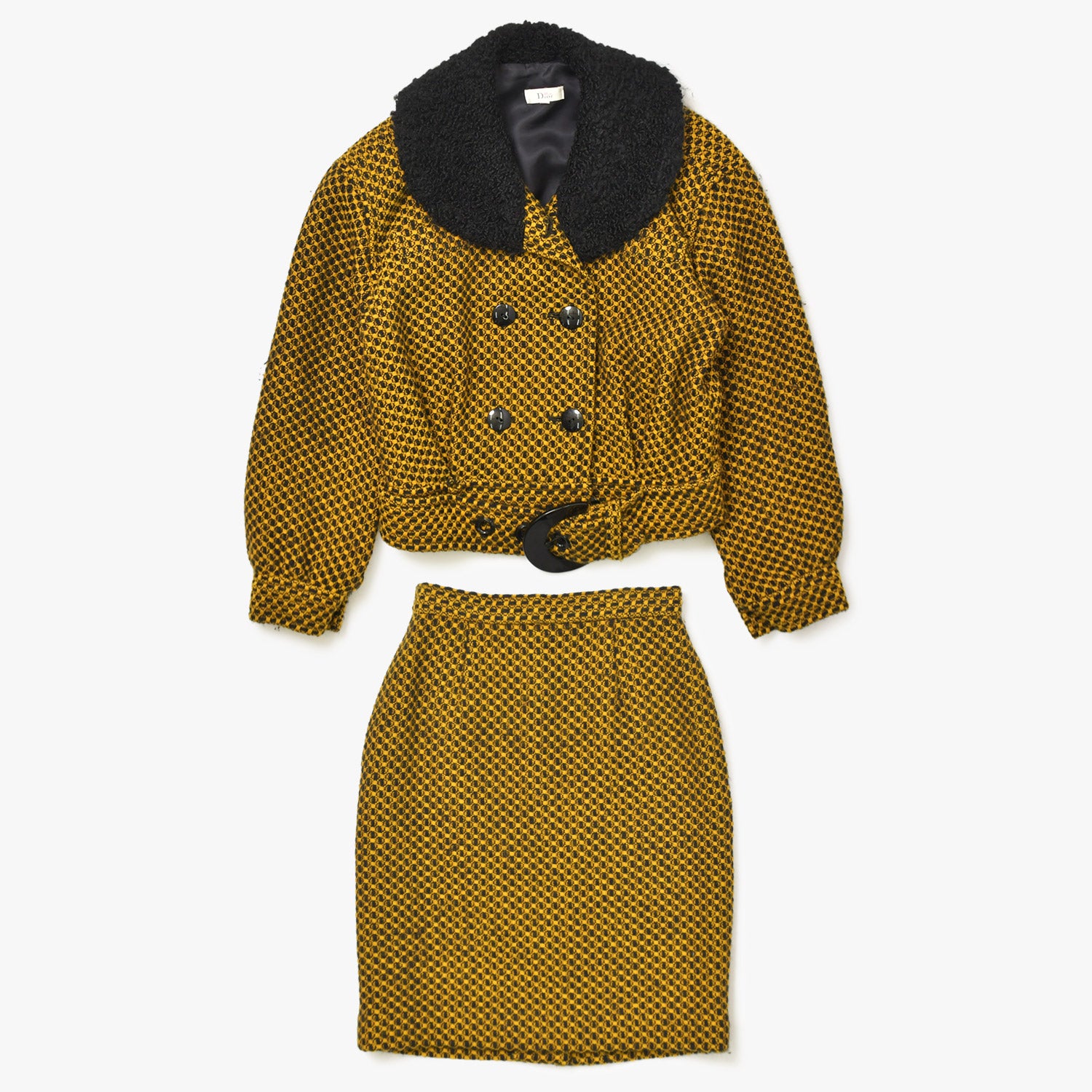 極美品 Dior ディオール 総柄 セットアップ 7040NE83 イエロー ブラック ウール ナイロン キュプラ 中古 4b010144