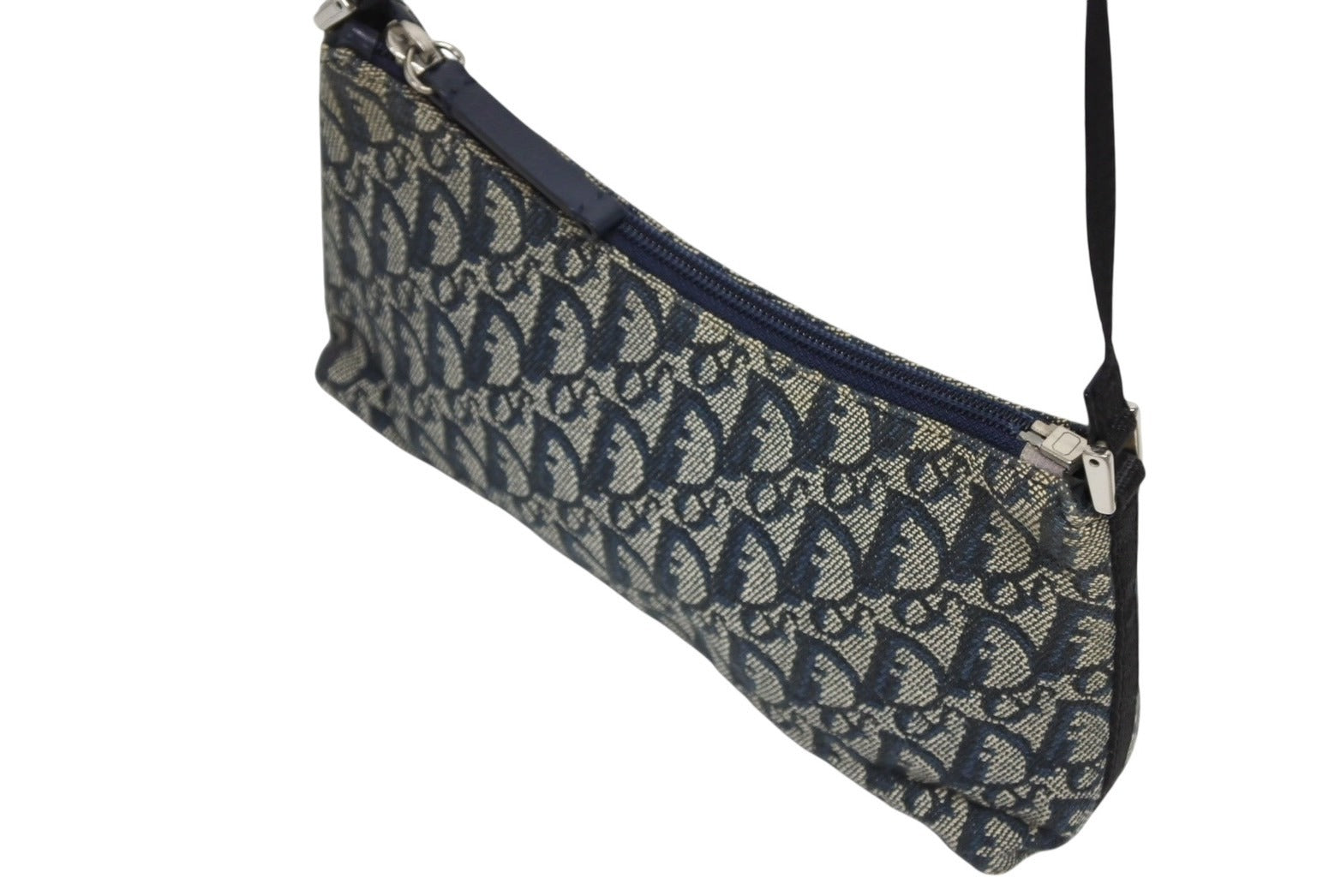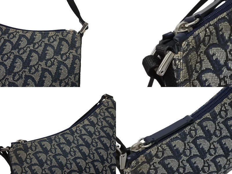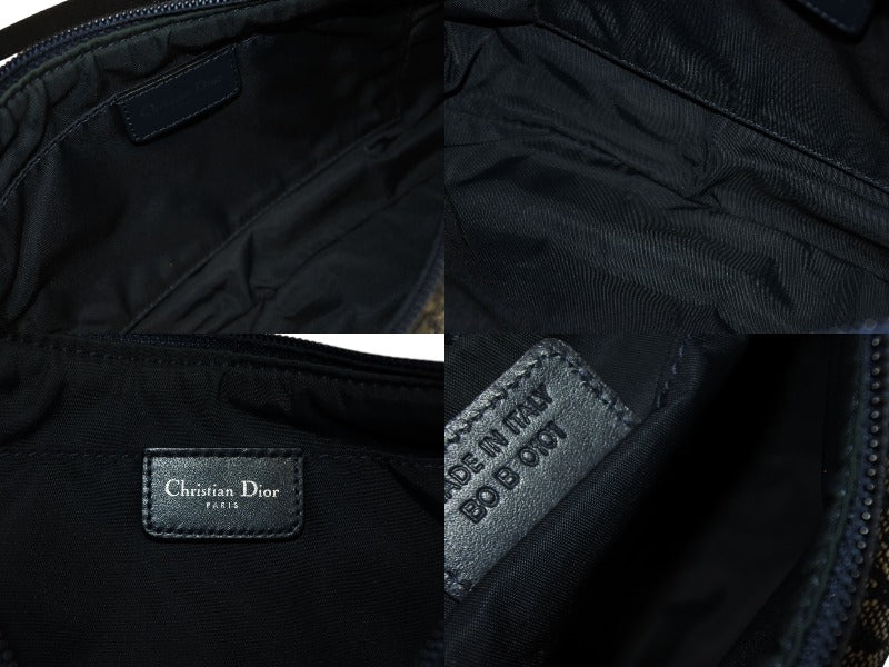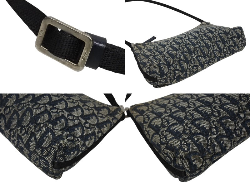 Christian Dior クリスチャンディオール ハンドバッグ ポーチ トロッター ネイビー コットンキャンバス BO B 0101 シルバー金具 美品 中古 4b010560