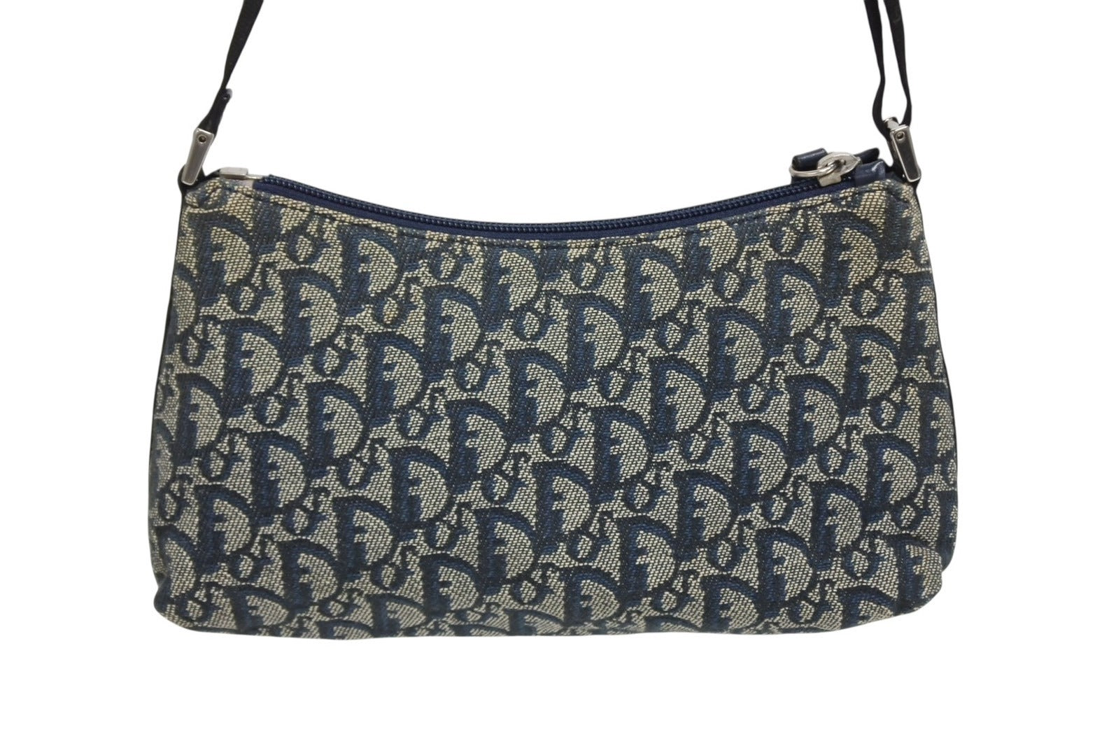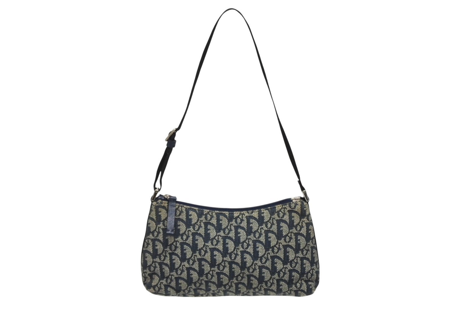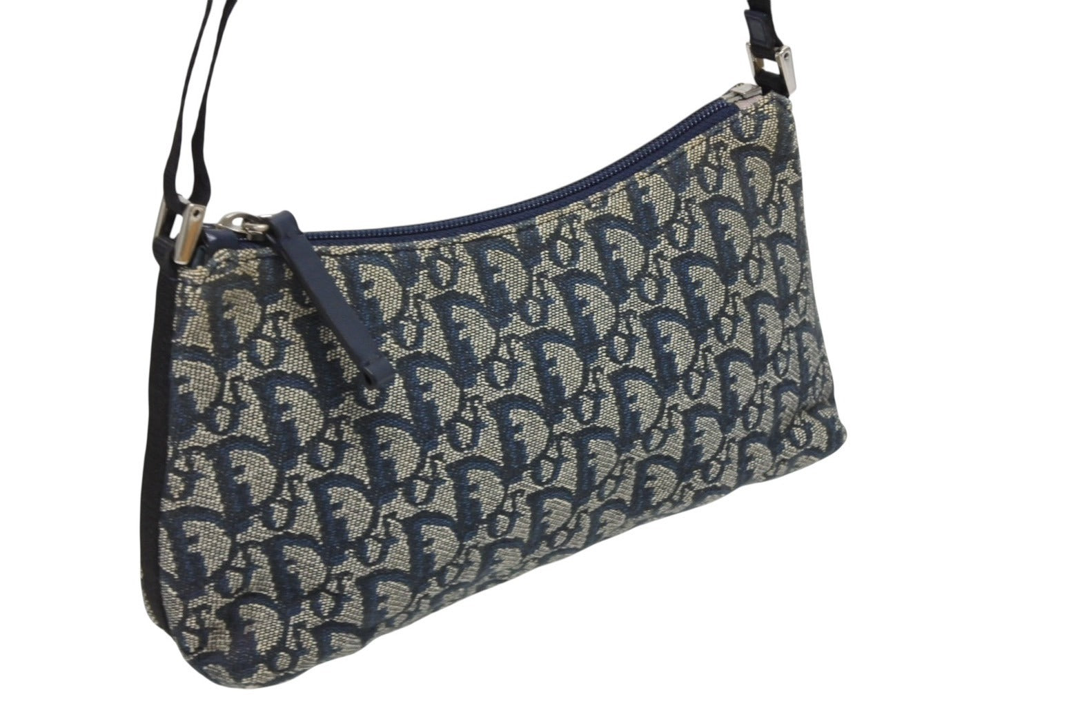 Christian Dior クリスチャンディオール ハンドバッグ ポーチ トロッター ネイビー コットンキャンバス BO B 0101 シルバー金具 美品 中古 4b010560
