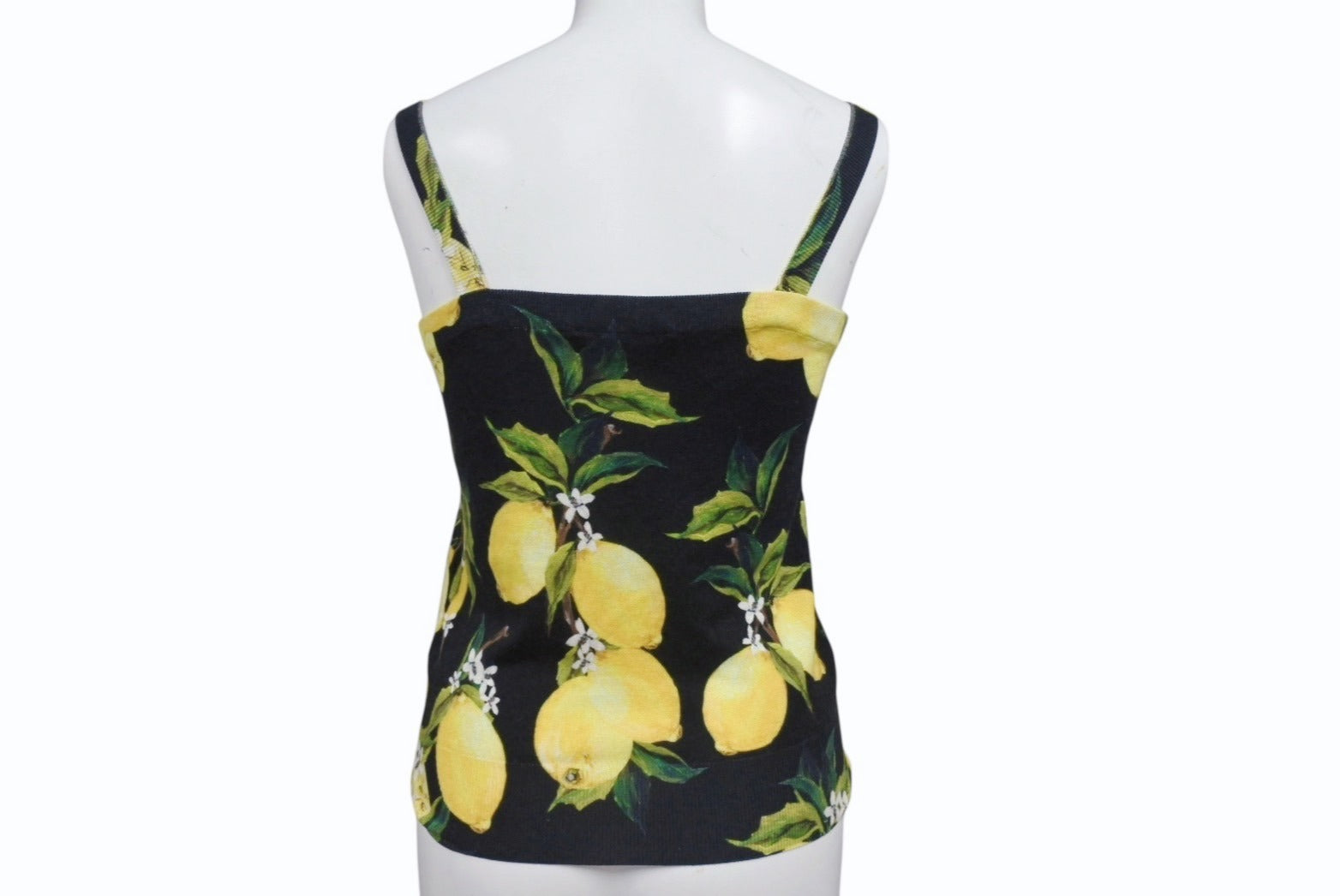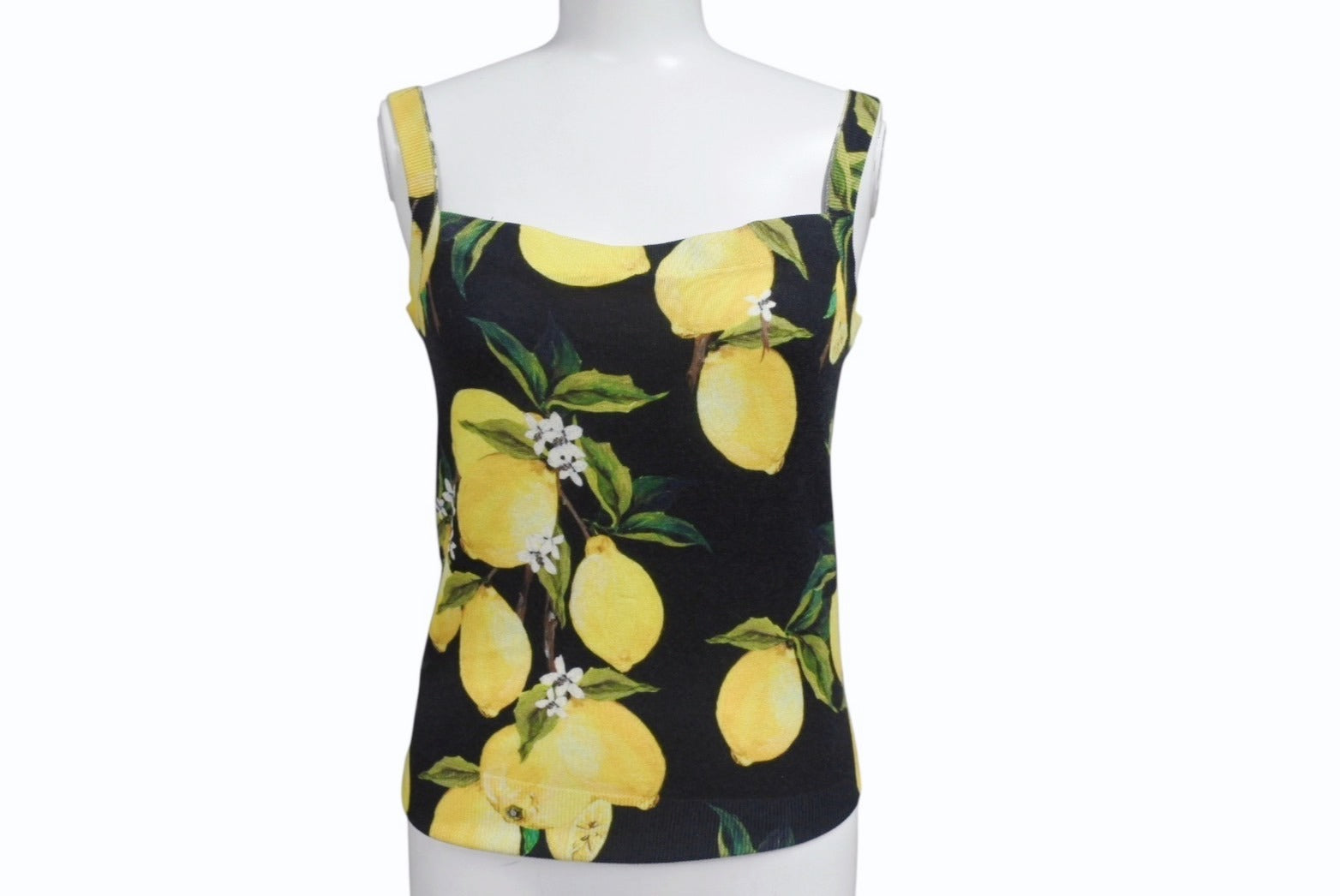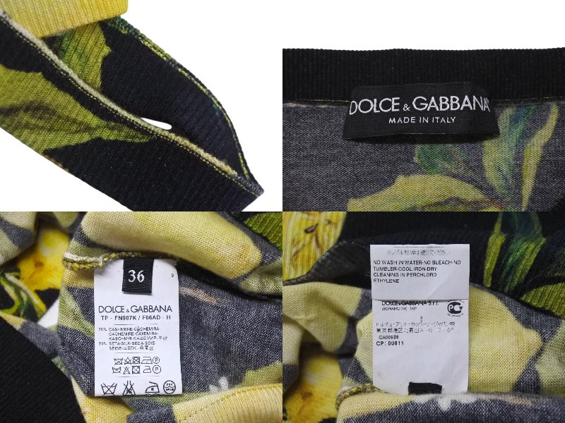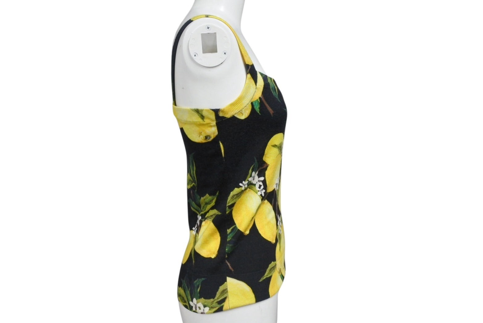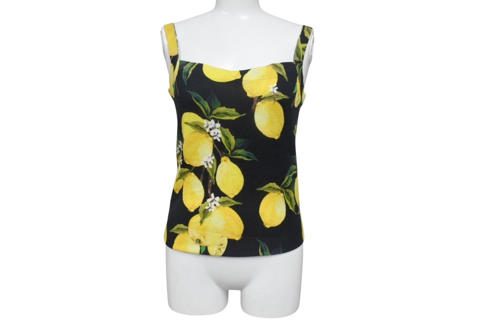 極美品 DOLCE&GABBANA ドルチェアンドガッバーナ キャミソール FN907K サイズ36 カシミヤ シルク ボタニカル レモン 総柄 中古 4b001658