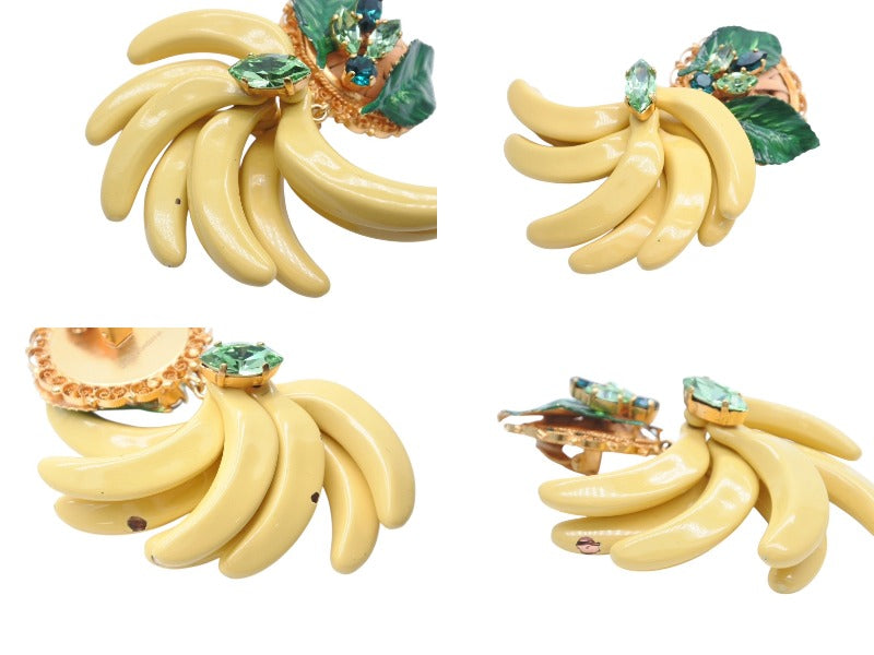 DOLCE&GABBANA ドルチェアンドガッバーナ イヤリング 重量約66.8g バナナ ブラス ラタン ラインストーン 美品 中古 4b006324