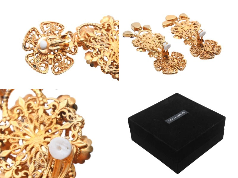 DOLCE&GABBANA ドルチェアンドガッバーナ イヤリング 重量約41.3g ブラス フェイクパール ラインストーン 美品 中古 4b006331