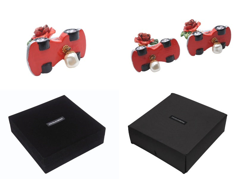 極美品 DOLCE&GABBANA ドルチェアンドガッバーナ イヤリング 重量約33.9g フェイクパール ラインストーン 薔薇 車 中古 4b006333