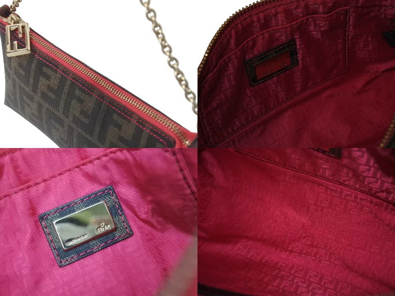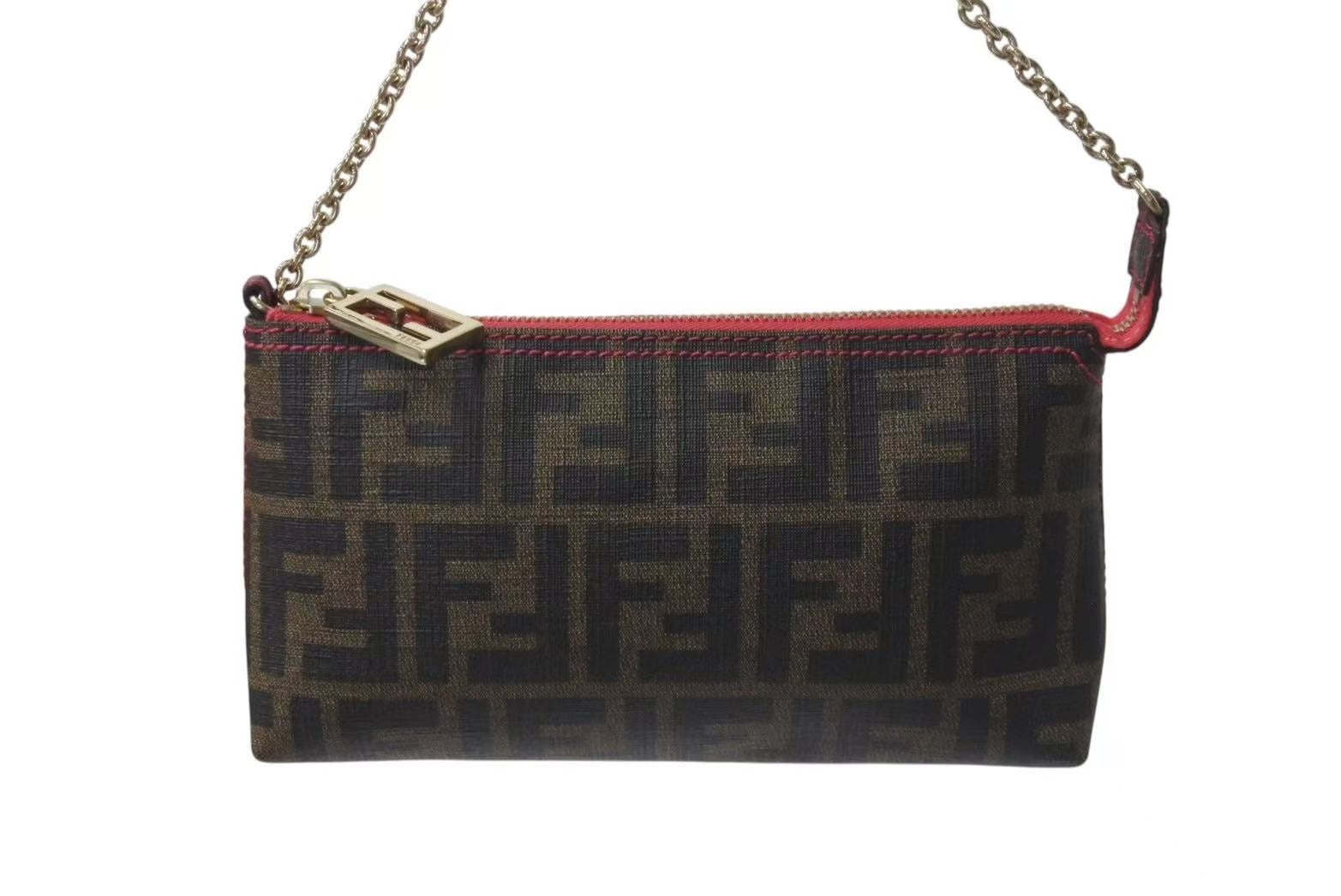 極美品 FENDI フェンディ アクセサリーポーチ ショルダーバッグ ズッカ PVCコーティングキャンバス 8BR592 ブラウン ゴールド金具 中古 4b000274