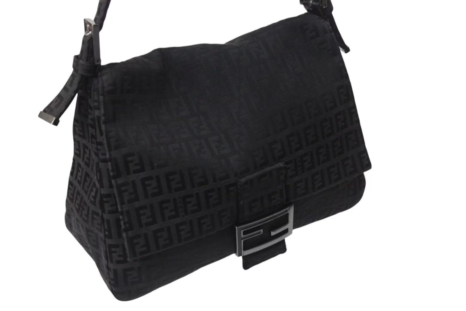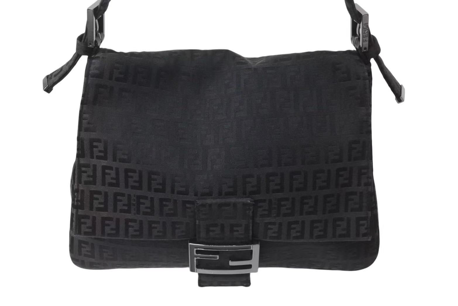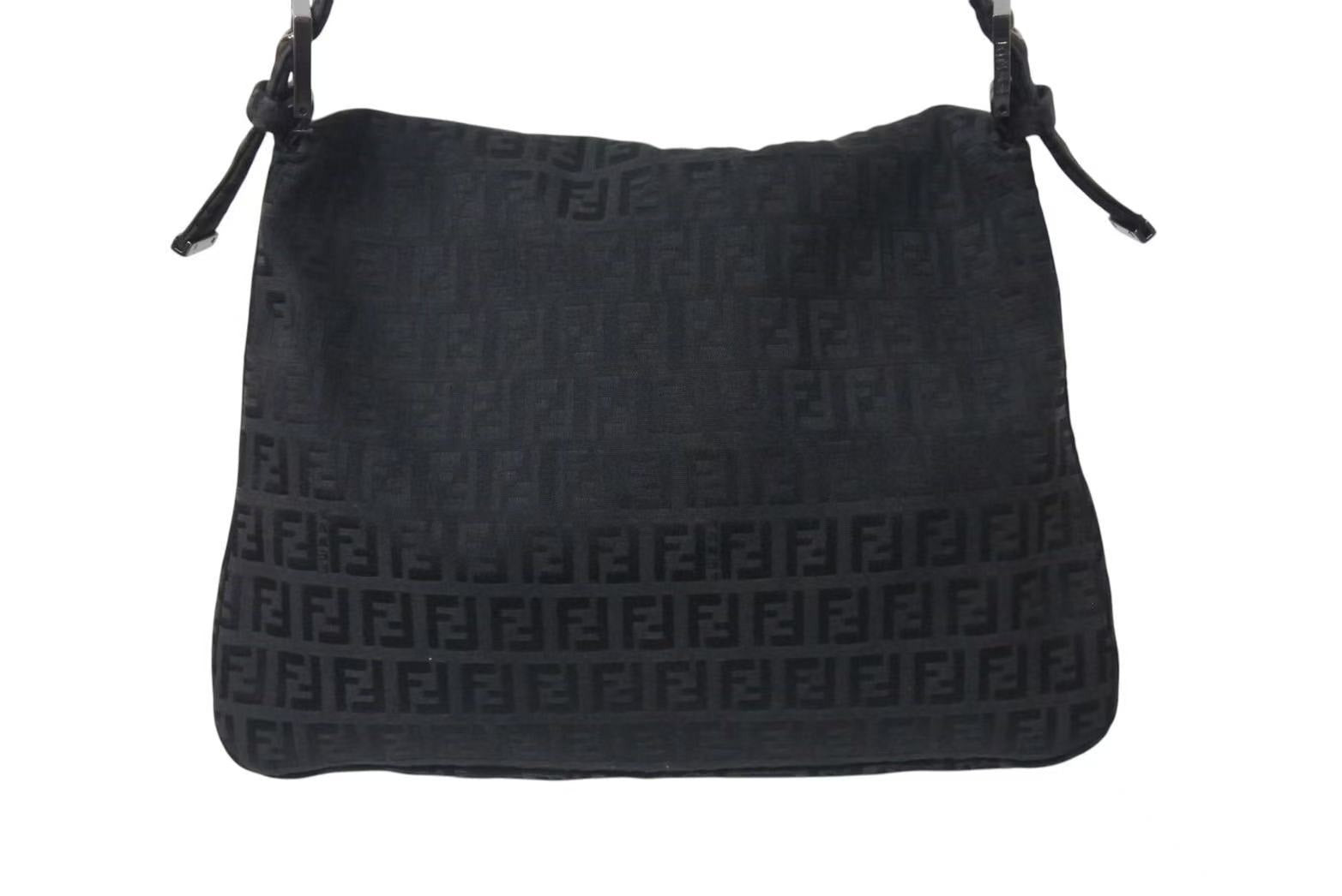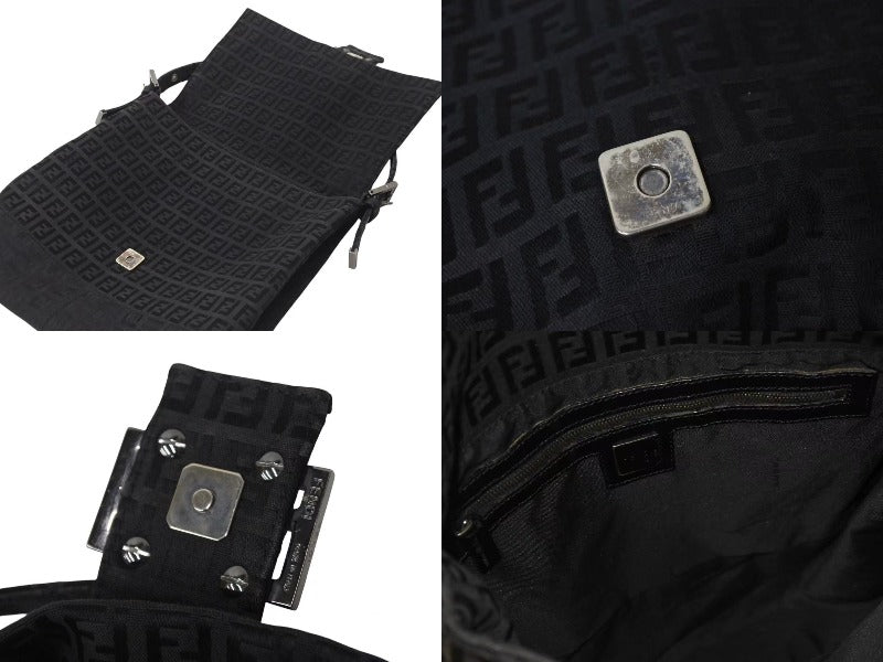 FENDI フェンディ ズッキーノ マンマバケット キャンバス ワンショルダーバッグ ブラック シルバー金具 8BR001 美品 中古 4b001745