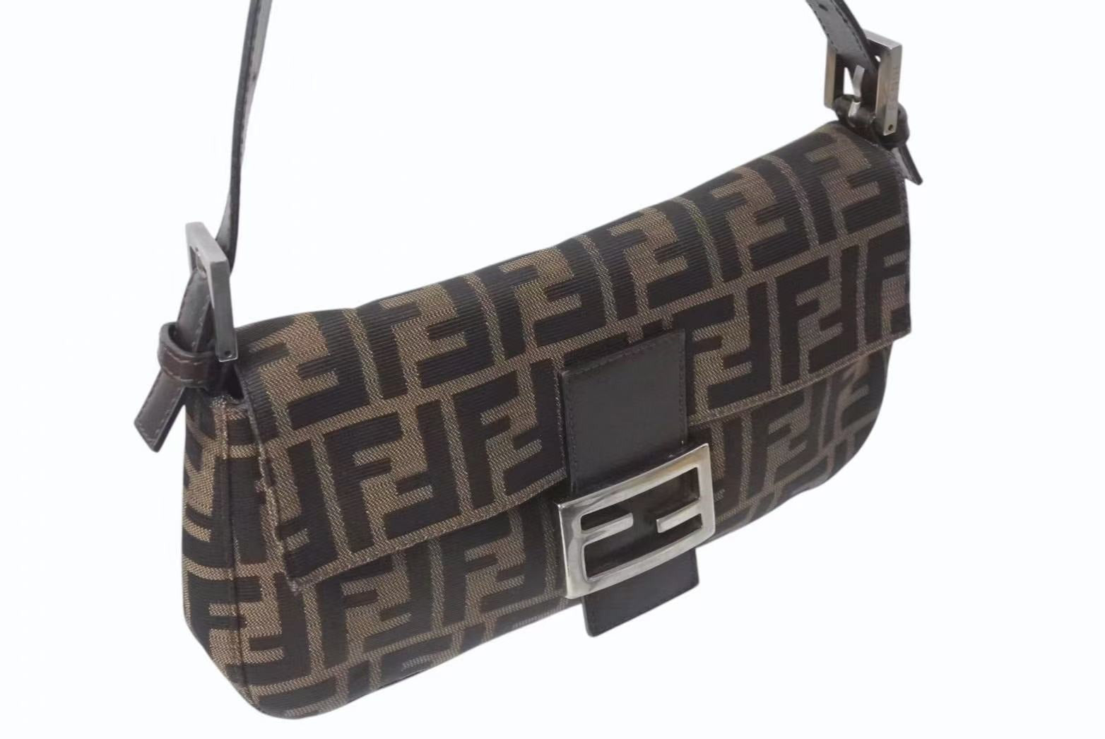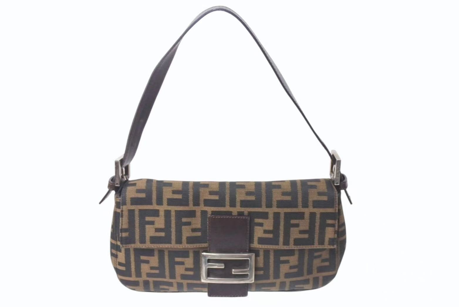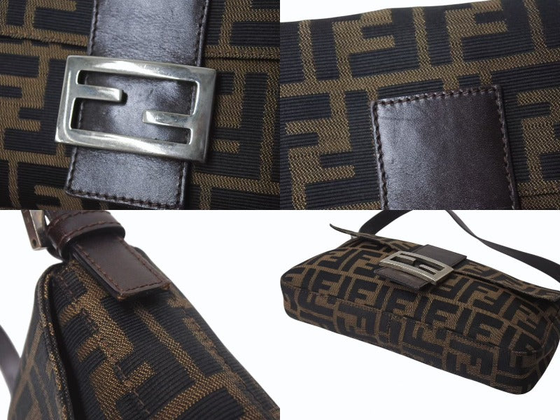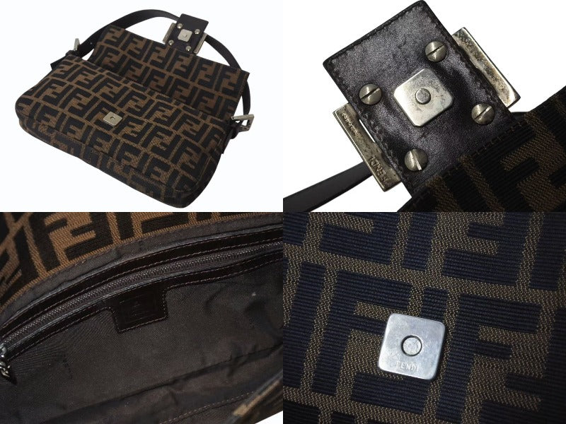 FENDI フェンディ マンマバケット ワンショルダーバッグ 26424 ズッカ柄 ブラウン キャンバス レザー シルバー金具 美品 中古 4b001773