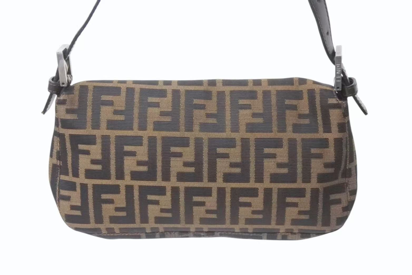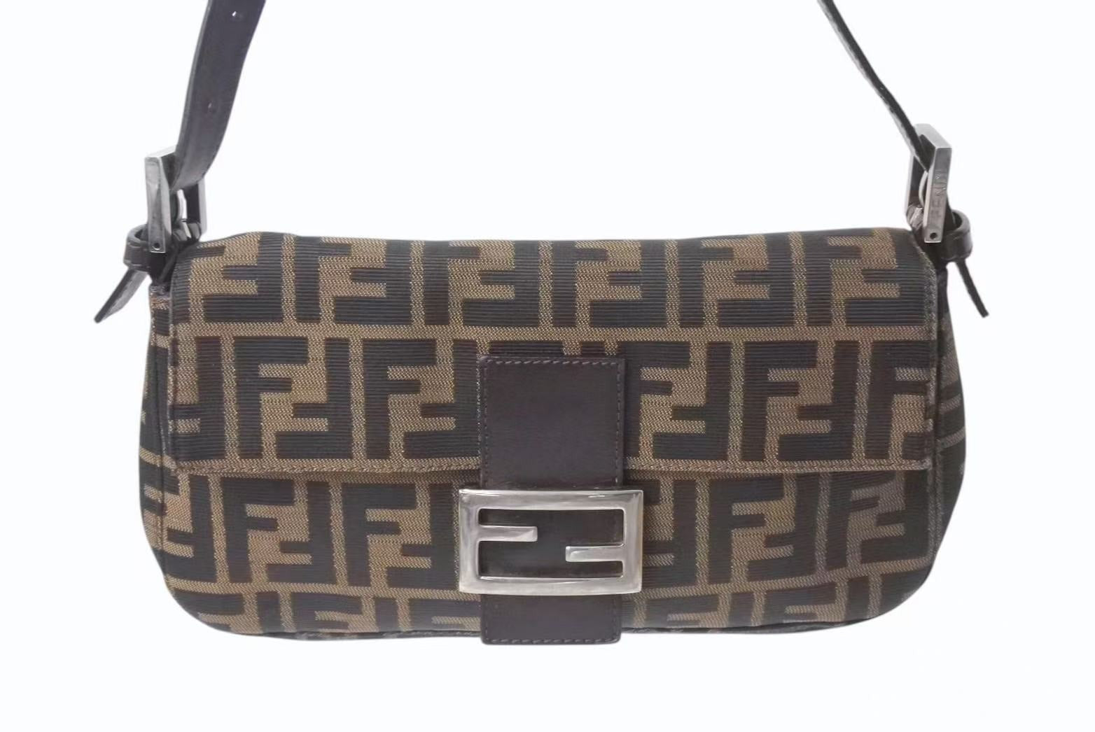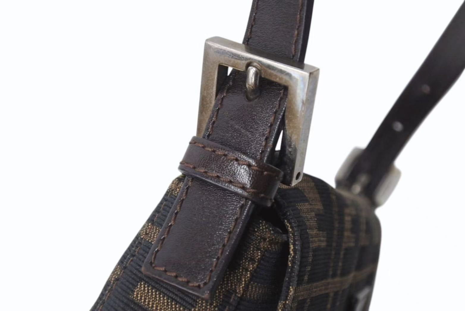 FENDI フェンディ マンマバケット ワンショルダーバッグ 26424 ズッカ柄 ブラウン キャンバス レザー シルバー金具 美品 中古 4b001773