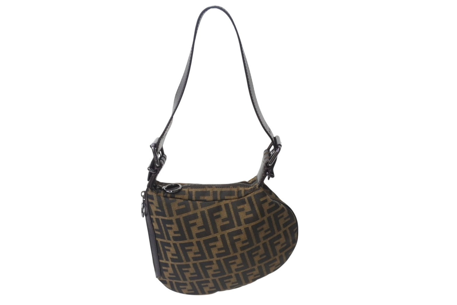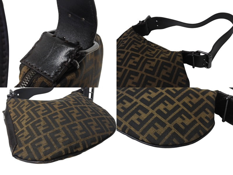 FENDI フェンディ ズッカ柄 ワンショルダーバッグ ハンドバッグ FF キャンバス レザー ブラウン ブラック ブラックメタル 美品 中古 4b001852