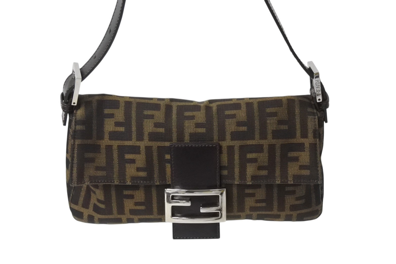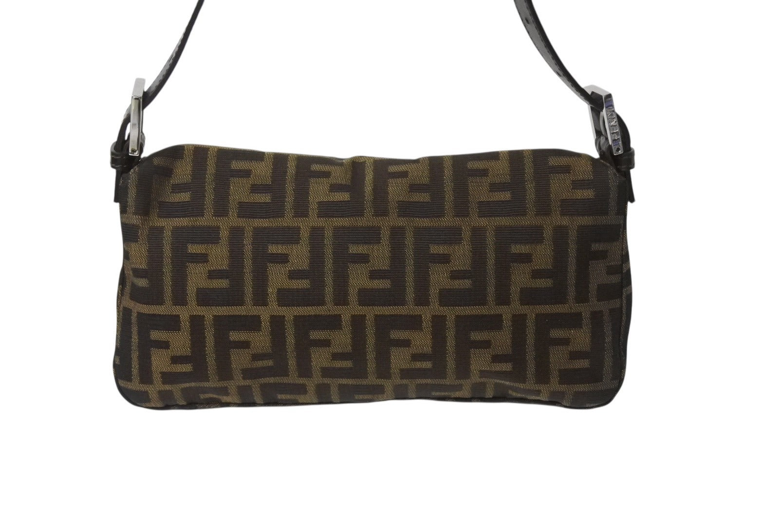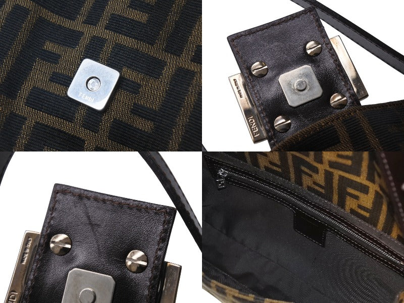 FENDI フェンディ マンマバケット ワンショルダーバッグ 26424 ズッカ柄 ブラウン キャンバス レザー シルバー金具 美品 中古 4b002046