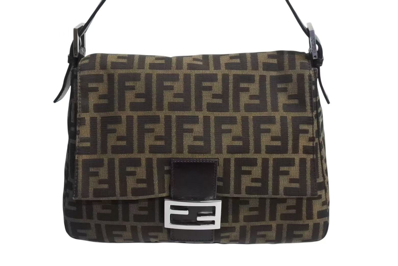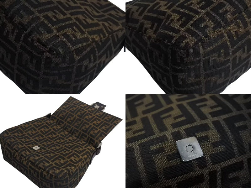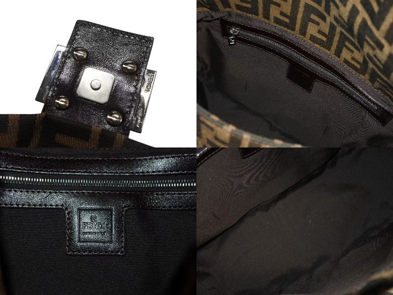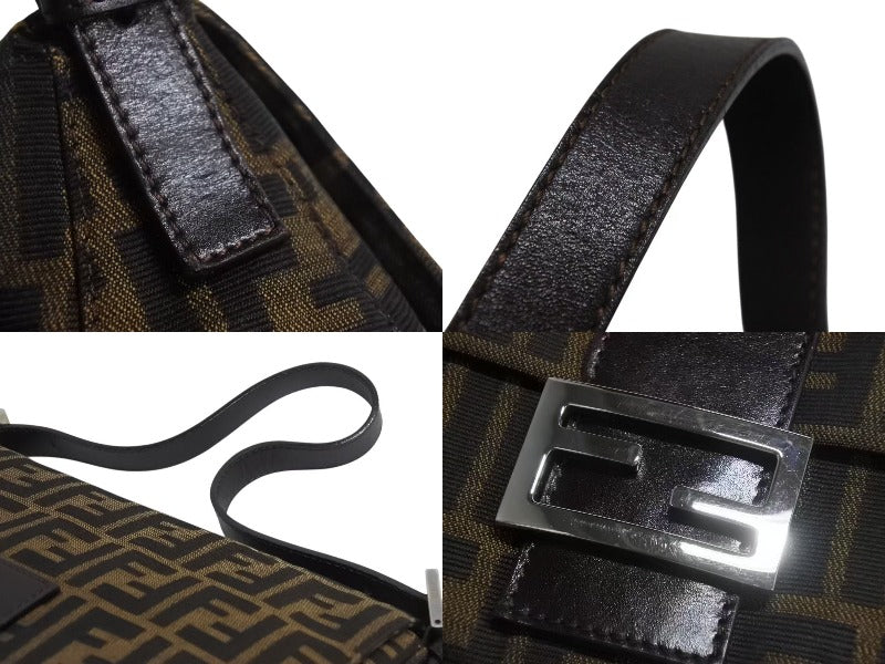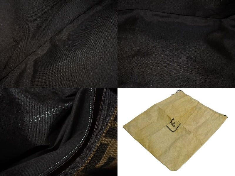 極美品 FENDI フェンディ マンマバケット ワンショルダーバッグ 26725 ズッカ柄 キャンバス レザー ブラウン 中古 4b002310