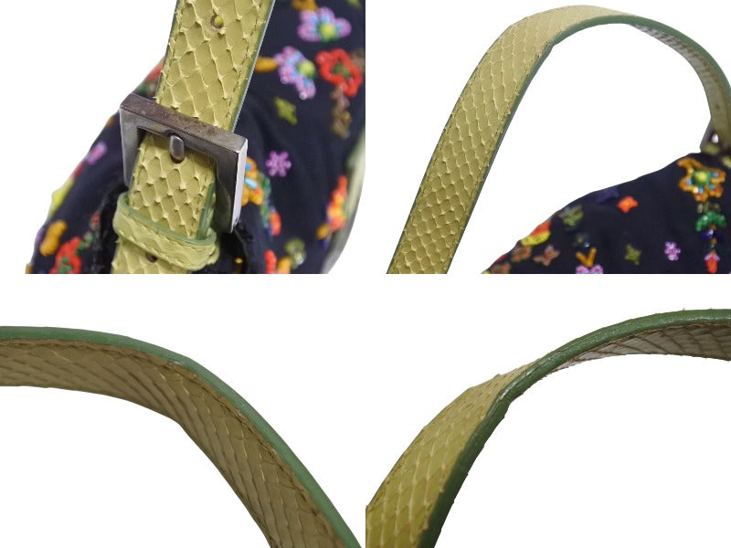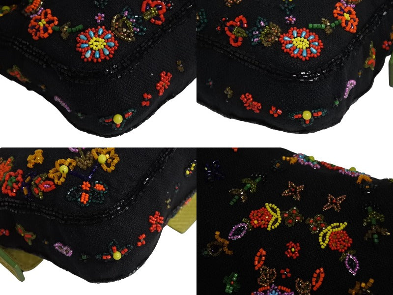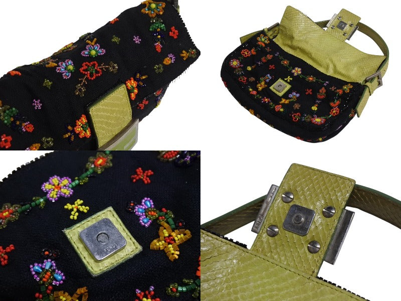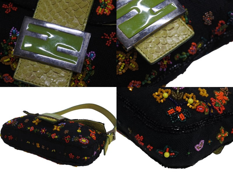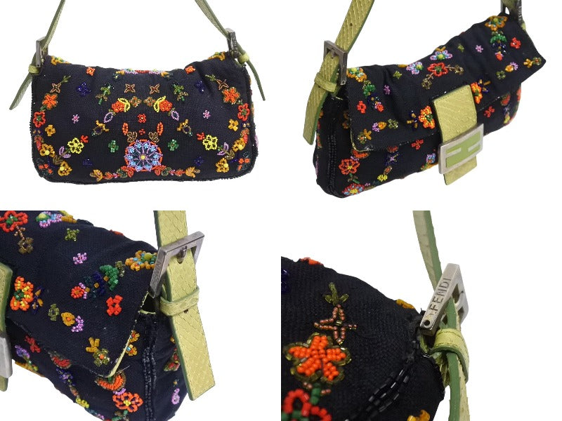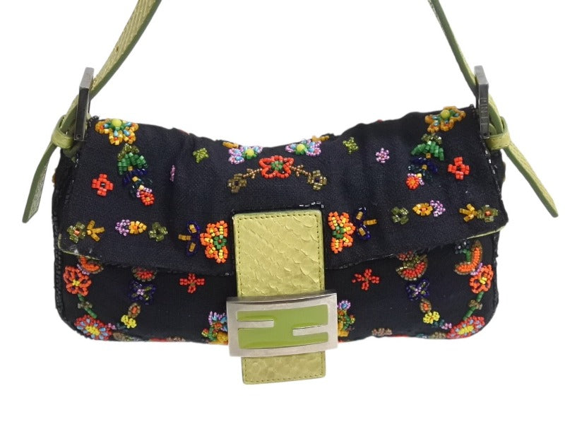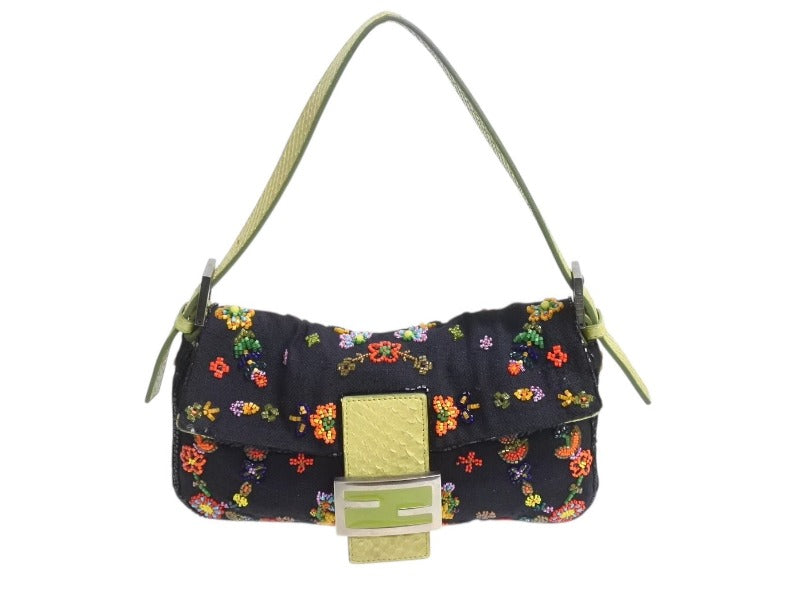 FENDI フェンディ ビーズ刺繍 マンマバケット ワンショルダーバッグ 26424 ブラック マルチカラー グリーン シルバー金具 ロゴ 美品 中古 4b002378