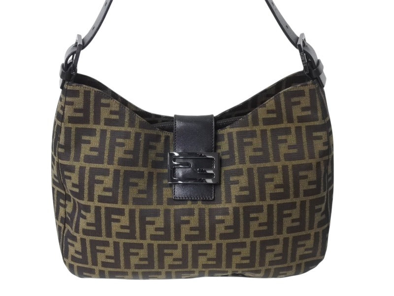 FENDI フェンディ マンマバケット ホーボー ワンショルダーバッグ 8BR036 ズッカ柄 キャンバス レザー ブラウン 美品 中古 4b003022