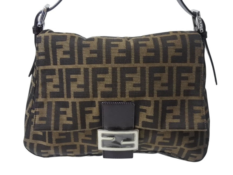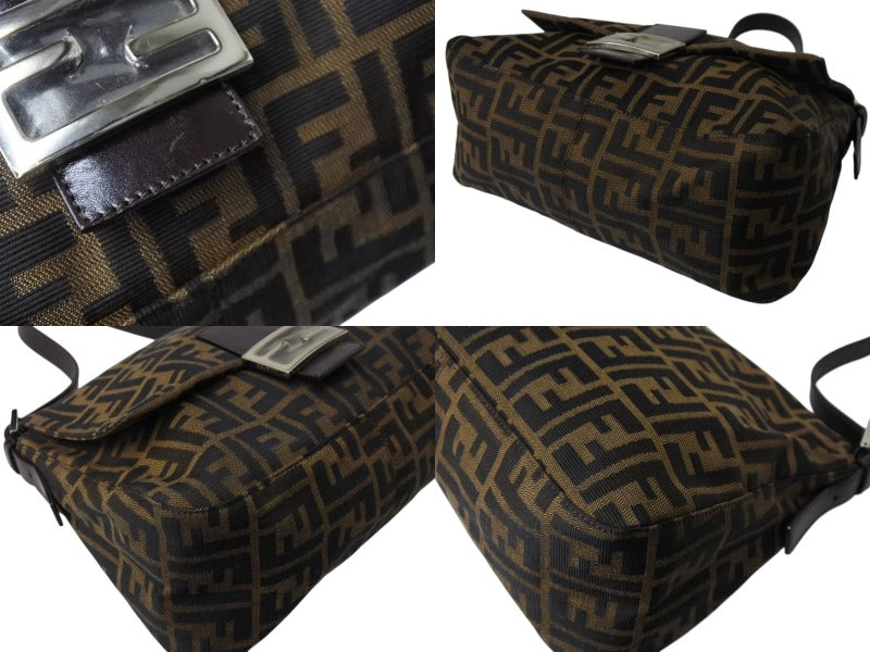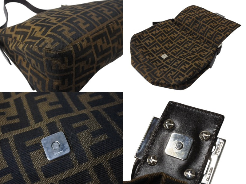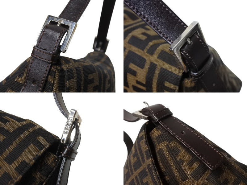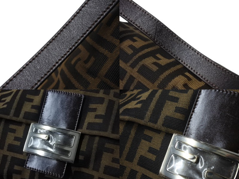 極美品 FENDI フェンディ マンマバケット ショルダーバッグ ズッカ柄 ブラウン コットンキャンバス レザー シルバー金具 中古 4b003682