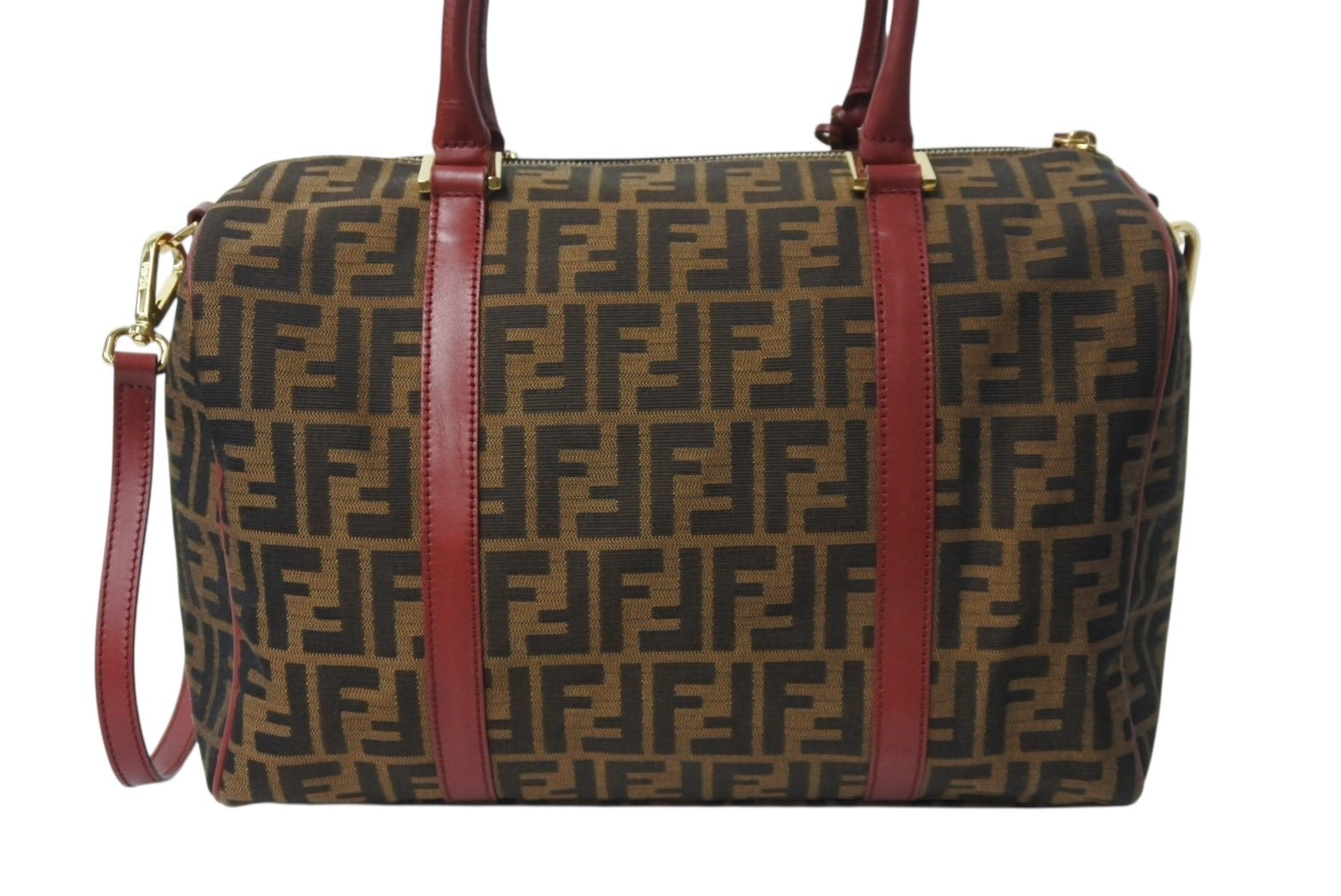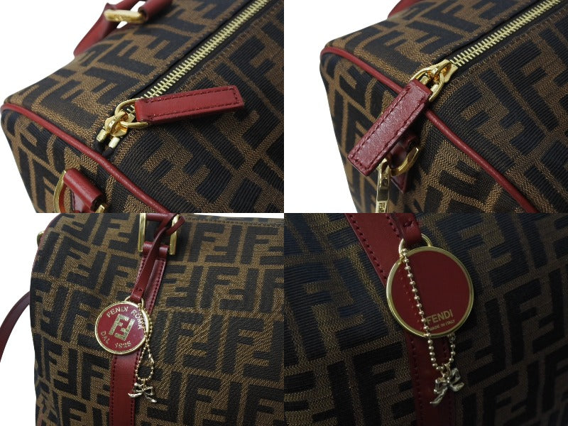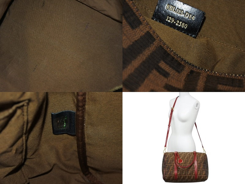 極美品 FENDI フェンディ 2WAY ハンドバッグ ショルダーバッグ ズッカ柄 キャンバス レザー ブラウン ゴールド金具 中古 4b003898