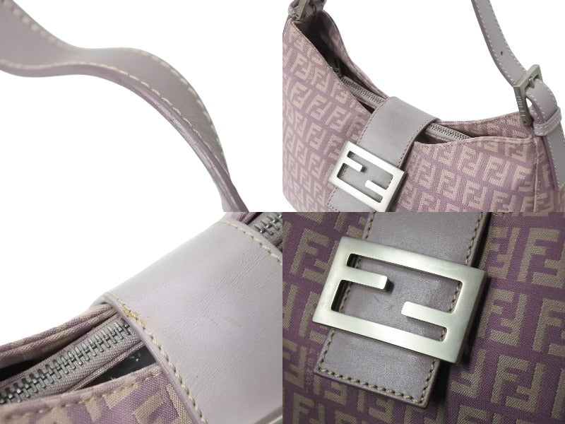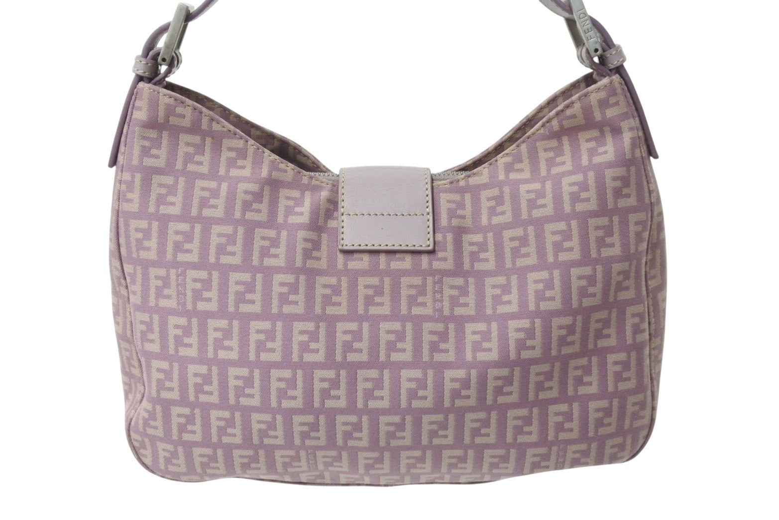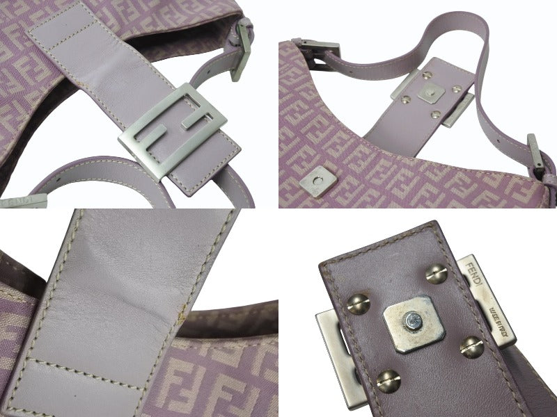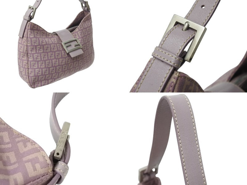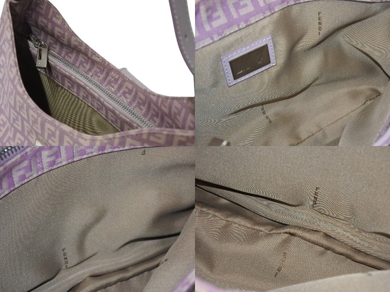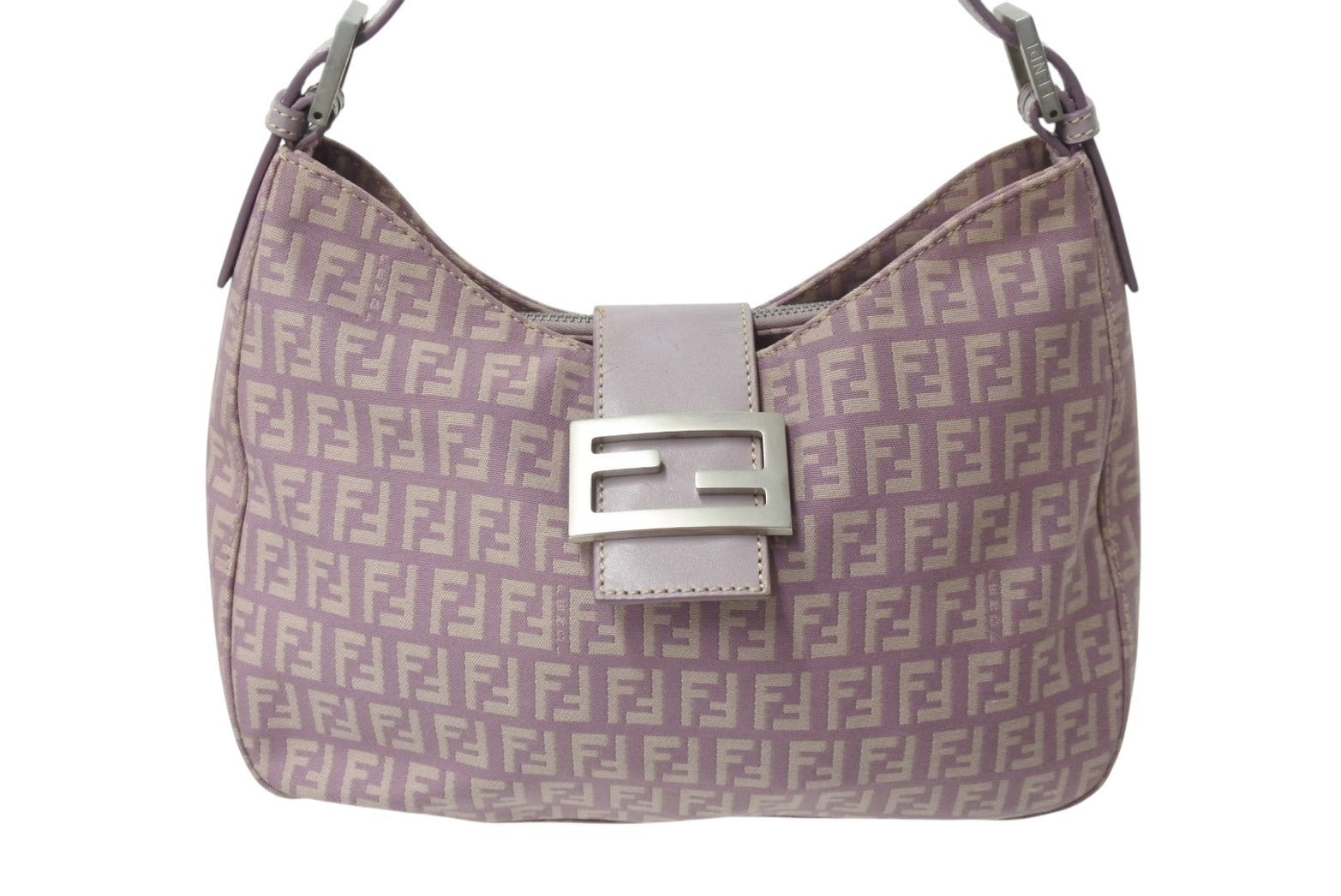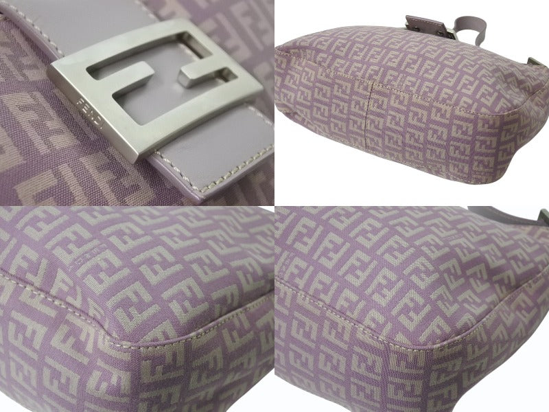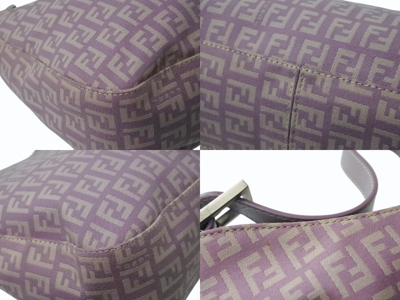 FENDI フェンディ マンマバケット ホーボー ワンショルダーバッグ 8BR036 ズッキーノ柄 キャンバス レザー パープル 美品 中古 4b003902